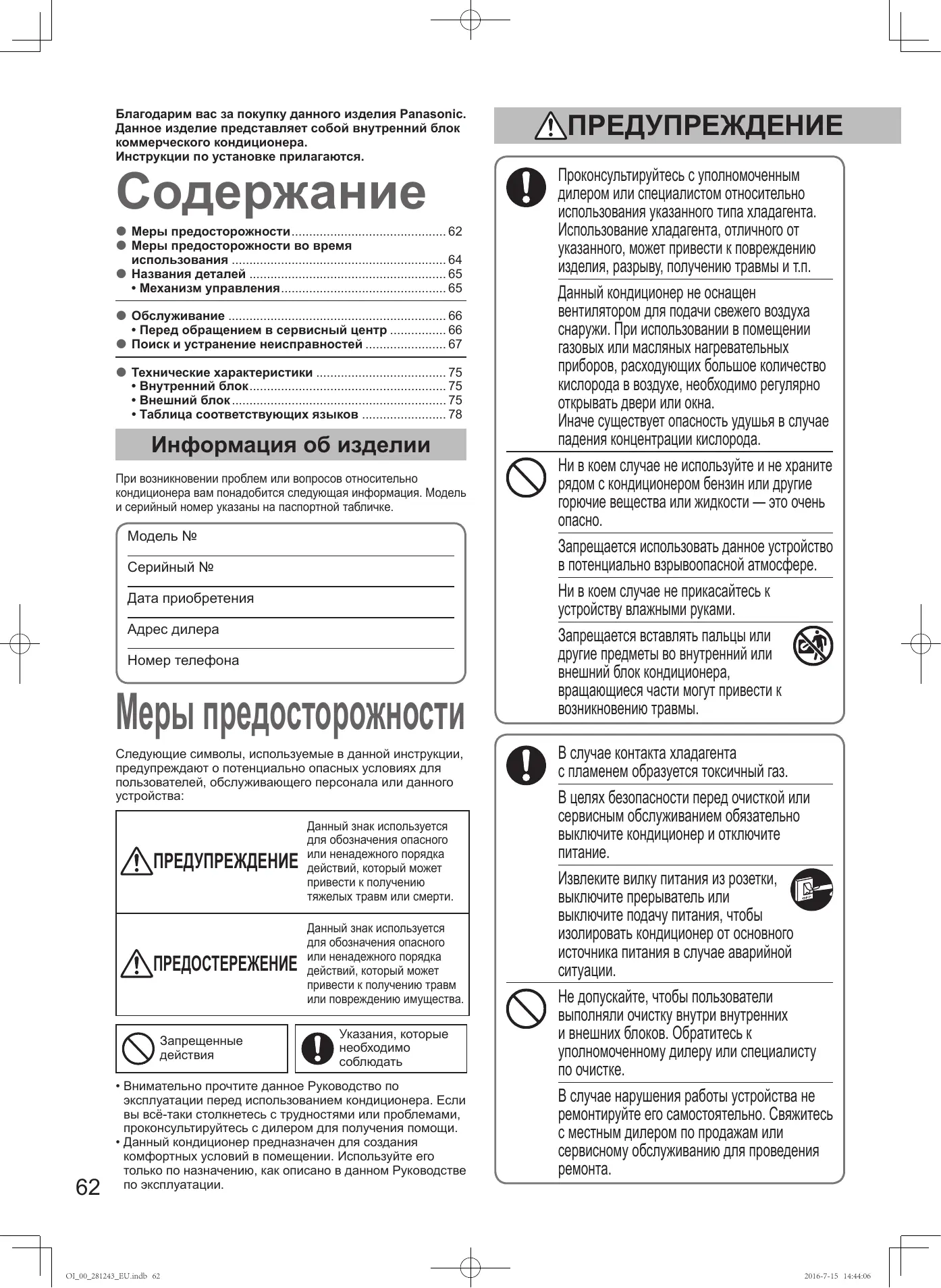 Найдите руководство к устройству бесплатно S60PU2E5A PANASONIC в формате PDF.