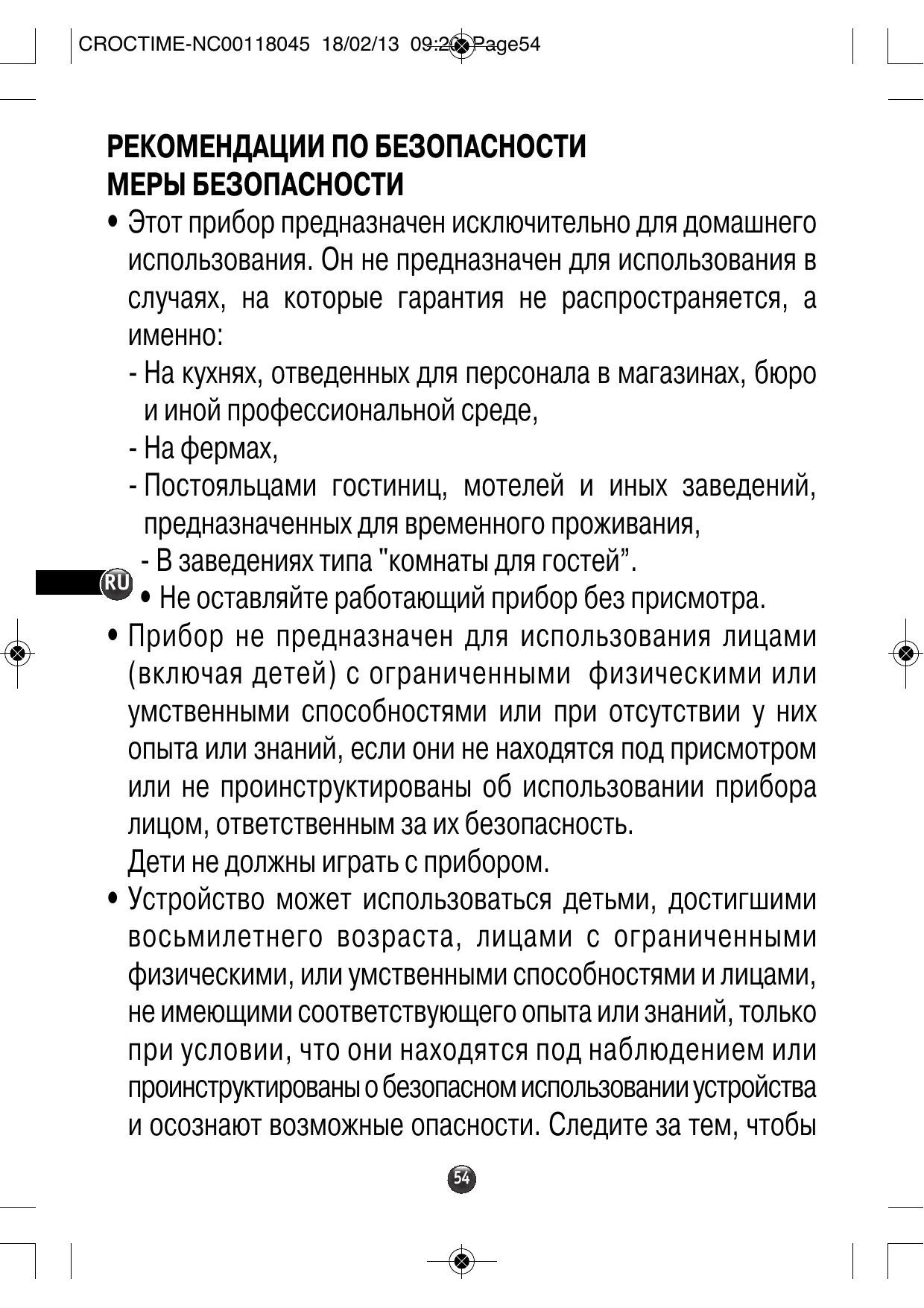 - dans les fermes, - par les clients des hôtels, motels et autres environnements à caractère résidentiel, - dans les environnements de type chambres d’hôtes. • Ne jamais utiliser l’appareil sans surveillance. • Cet appareil n’est pas prévu pour être utilisé par des personnes (y compris les enfants) dont les capacités physiques, sensorielles ou mentales sont réduites, ou des personnes dénuées d’expérience ou de connaissance, sauf si elles ont pu bénéficier, par l’intermédiaire d’une personne responsable de leur sécurité, d’une surveillance ou d’instructions préalables concernant l’utilisation de l’appareil. Il convient de surveiller les enfants pour s’assurer qu’ils ne jouent pas avec l’appareil. • Cet appareil peut être utilisé par des enfants de 8 ans et plus et les personnes manquant d’expérience et de connaissances ou dont les capacités physiques, sensorielles ou mentales sont réduites, si elles ont été formées et encadrées quant à l’utilisation de l’appareil d’une manière sûre et connaissent les risques encourus. Les enfants ne doivent pas jouer avec l’appareil. Le nettoyage et l’entretien par l’utilisateur ne doit pas être fait par des enfants à moins qu’ils soient âgés de 8