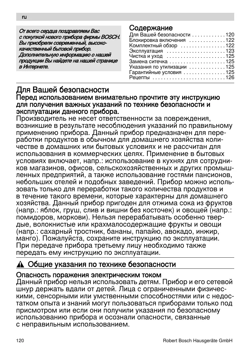 РУКОВОДСТВО ПОЛЬЗОВАТЕЛЯ MES4000 VITAJUICE BOSCH