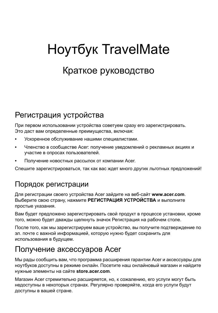 Длг Perictpaun CBOero yctpoiCTBa Acer 3aundte Ha Be6-caT www.acer.com. BbIepeHte cBOO CTpaHy, HaxMITE PEGNTPAUN YCTPOICTBA N BBIOHNHTe npocTbe yka3aHn.