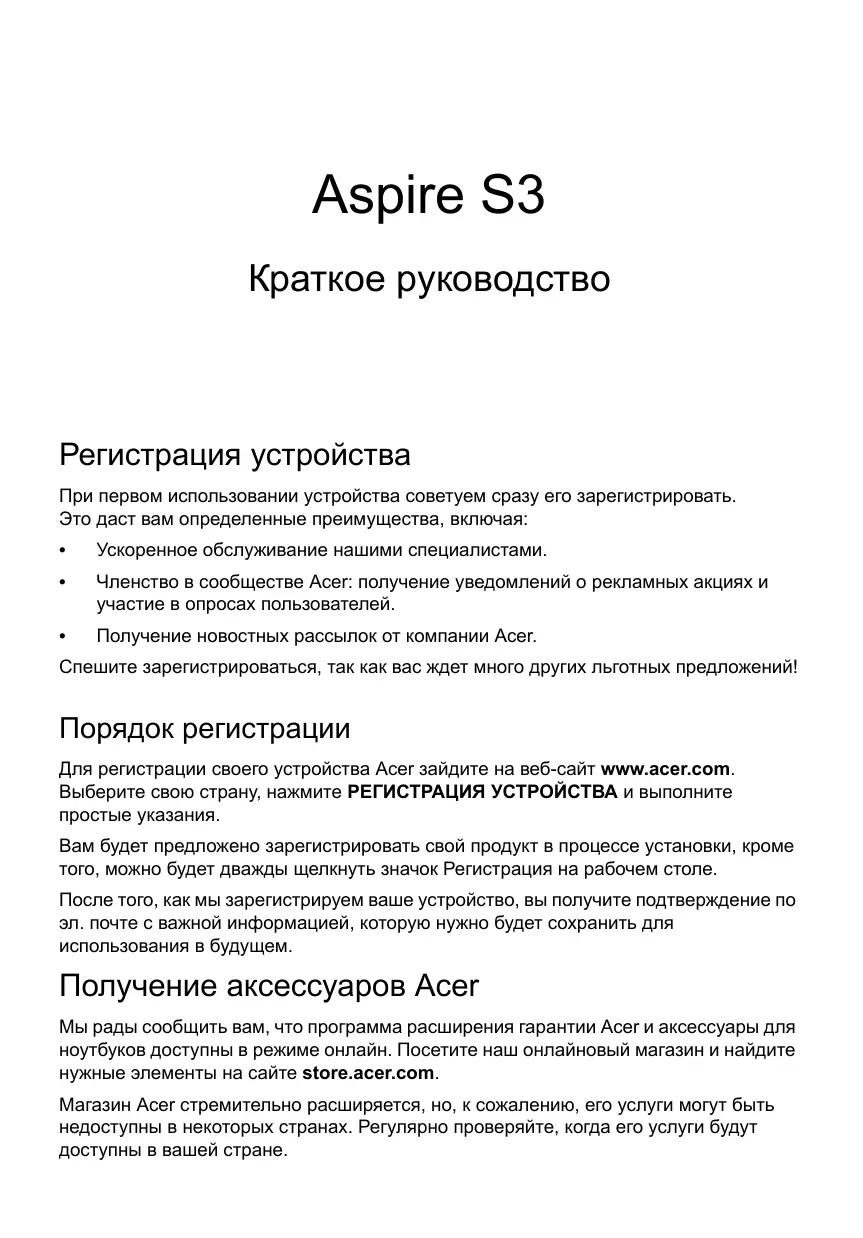 Найдите руководство к устройству бесплатно ASPIRE S3-331 ACER в формате PDF.