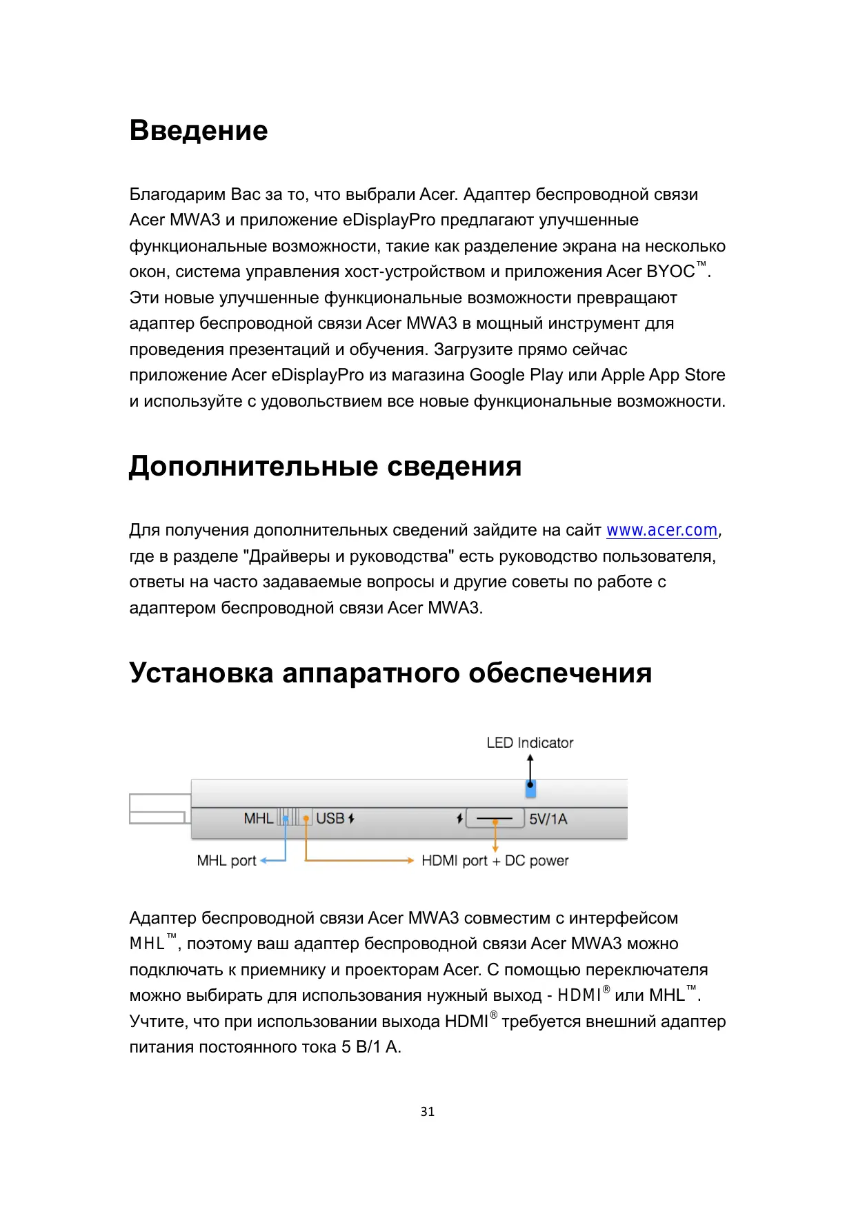 Найдите руководство к устройству бесплатно MWA3 ACER в формате PDF.
