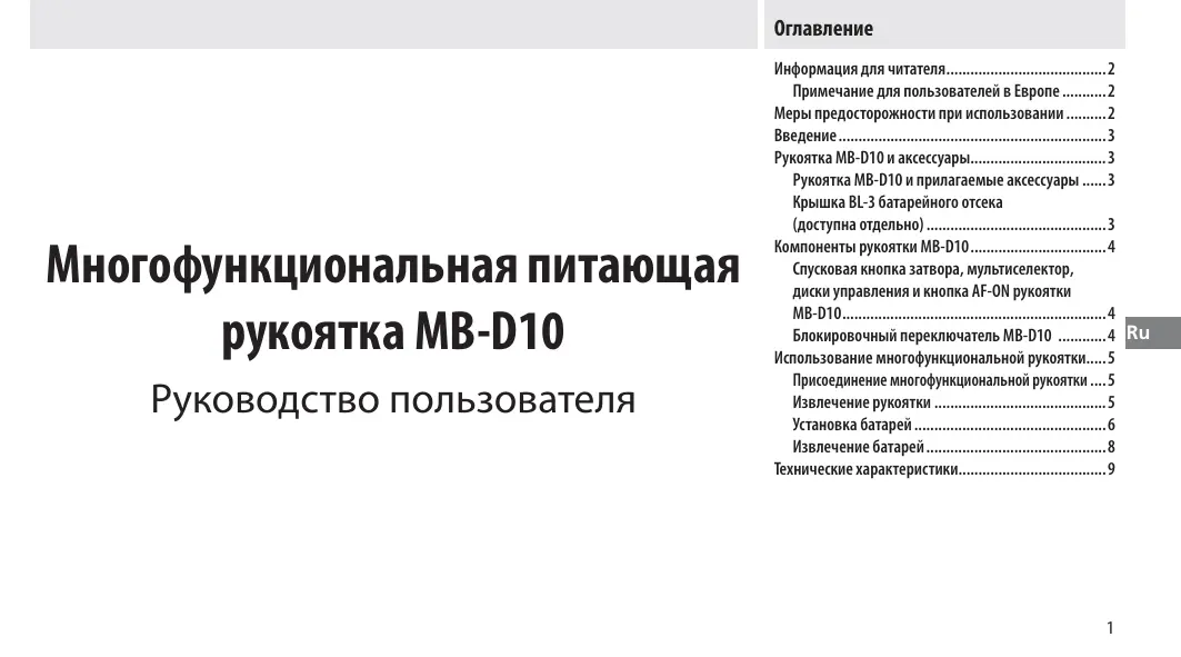 MB-D10 MULTI-POWER BATTERY PACK - фотоаксессуары NIKON - Бесплатное руководство пользователя