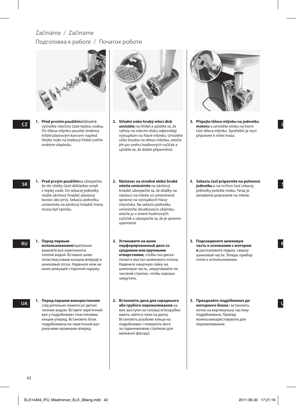 к основанию с двигателем, установите поднос на место. Вставьте фиксирующее устройство для формовки колбасок. Выберите один из четырех вариантов формовки колбасок.