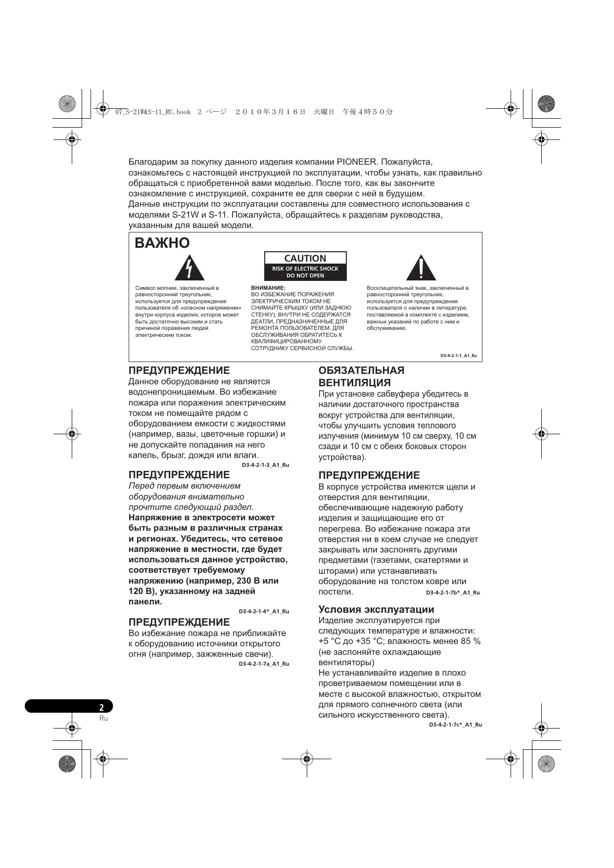 Найдите руководство к устройству бесплатно S-11 PIONEER в формате PDF.