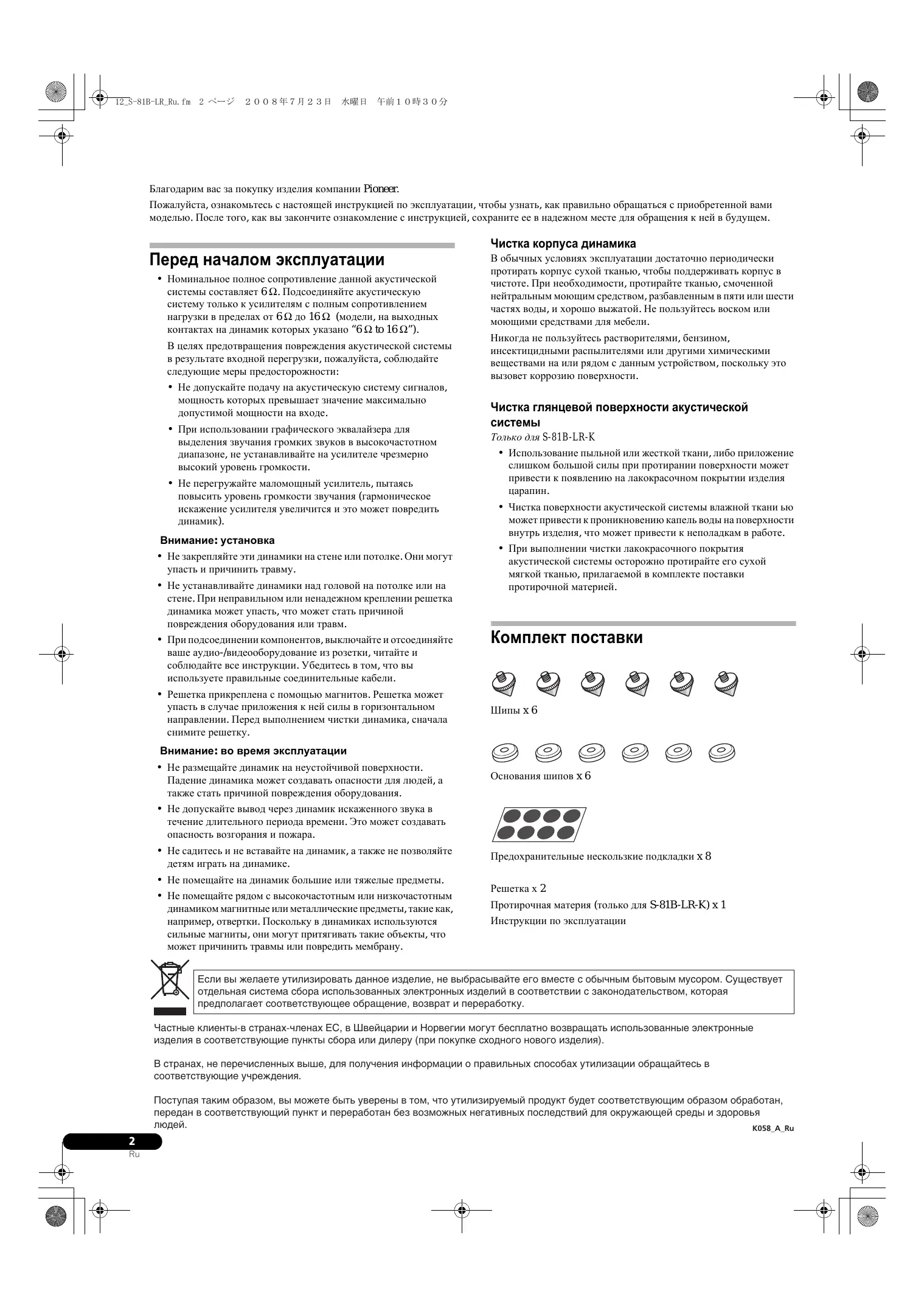 Скачайте инструкцию для вашего неопределённый в формате PDF бесплатно! Найдите своё руководство S-81B-LR-K - PIONEER и возьмите своё электронное устройство обратно в руки. На этой странице опубликованы все документы, необходимые для использования вашего устройства. S-81B-LR-K бренда PIONEER.