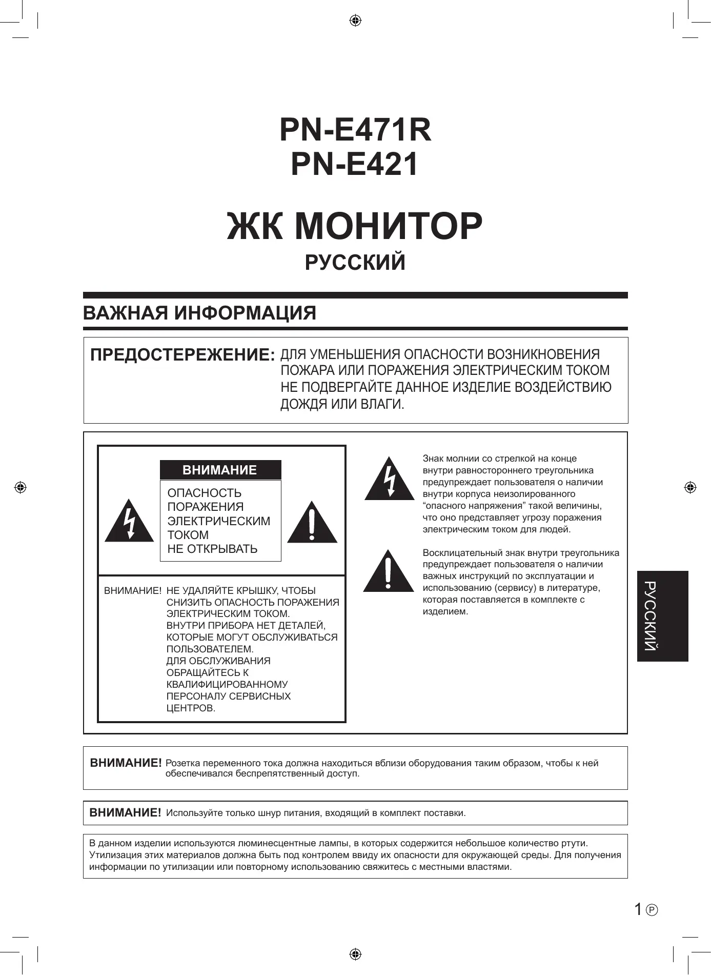 РУКОВОДСТВО ПОЛЬЗОВАТЕЛЯ PN-E471R SHARP