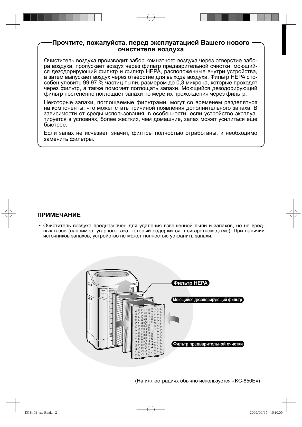 РУКОВОДСТВО ПОЛЬЗОВАТЕЛЯ KC-840E SHARP