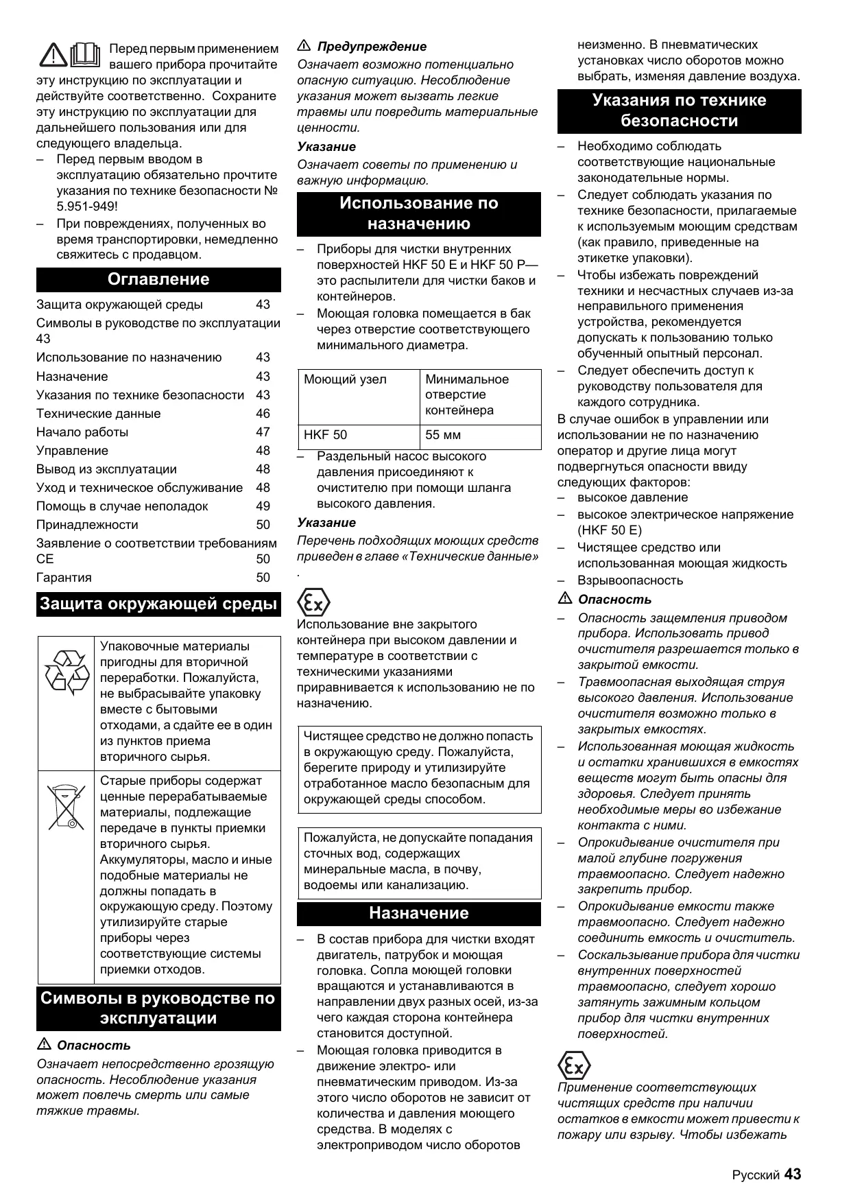РУКОВОДСТВО ПОЛЬЗОВАТЕЛЯ HKF 50 E KARCHER
