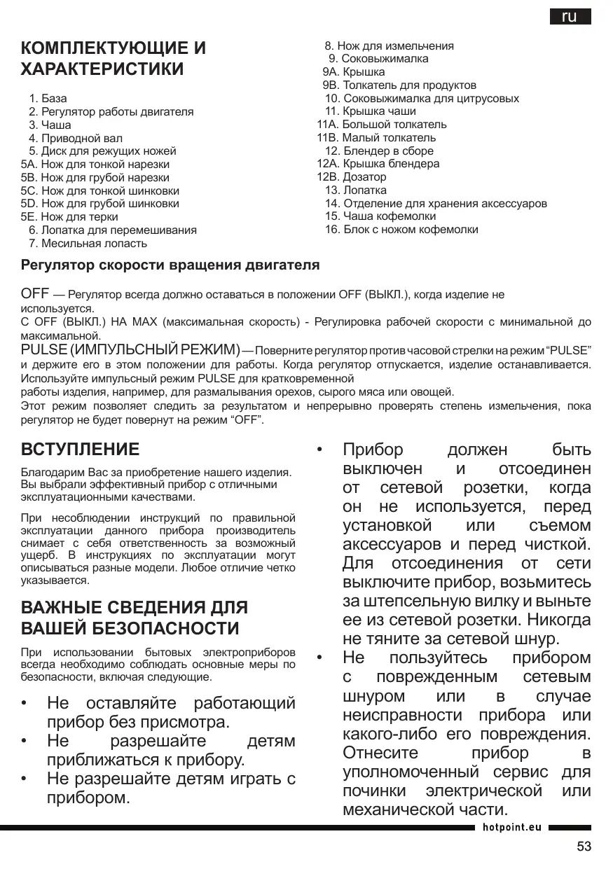 Скачайте инструкцию для вашего Кухонный комбайн в формате PDF бесплатно! Найдите своё руководство FP 1005 AX0 - HOTPOINT и возьмите своё электронное устройство обратно в руки. На этой странице опубликованы все документы, необходимые для использования вашего устройства. FP 1005 AX0 бренда HOTPOINT.