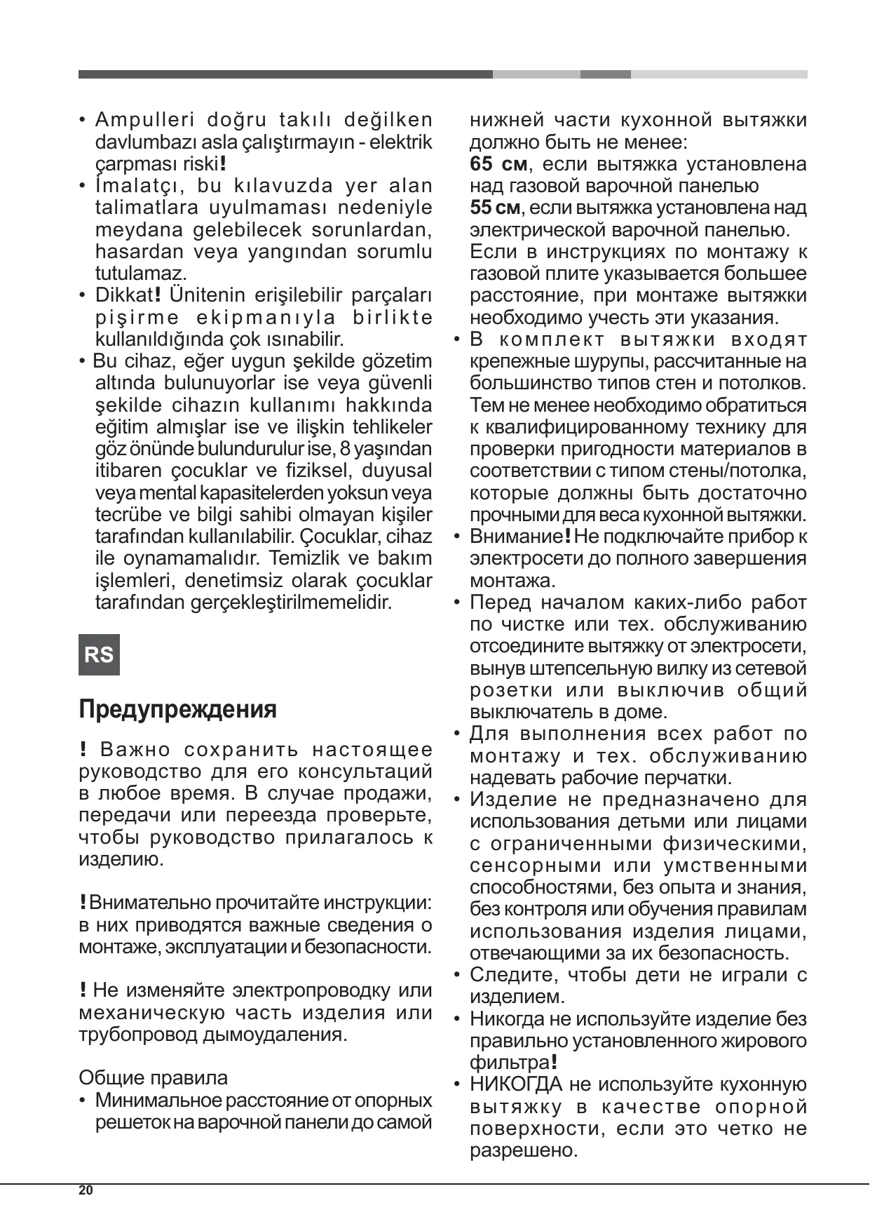 ! Внимательно прочитайте инструкции: в них приводятся важные сведения о монтаже, эксплуатации и безопасности. ! Не изменяйте электропроводку или механическую часть изделия или трубопровод дымоудаления. Общие правила