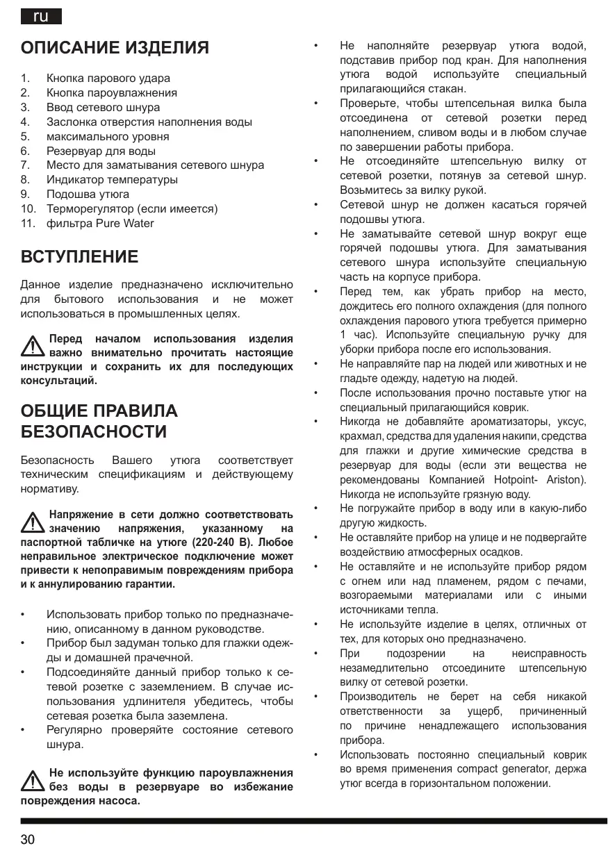 II E75 AA0 - утюг HOTPOINT - Бесплатное руководство пользователя