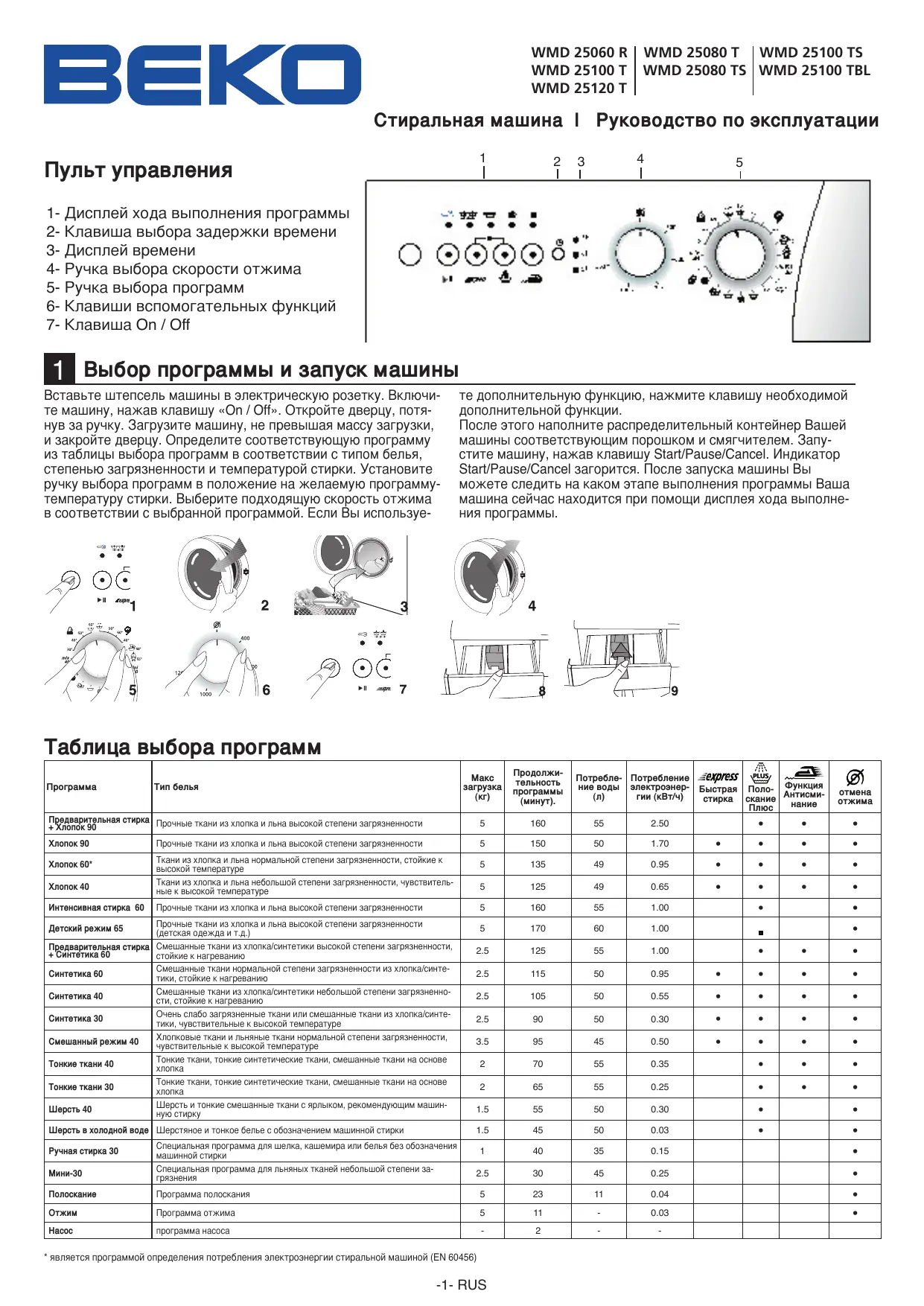 РУКОВОДСТВО ПОЛЬЗОВАТЕЛЯ WMD 25080 TS BEKO