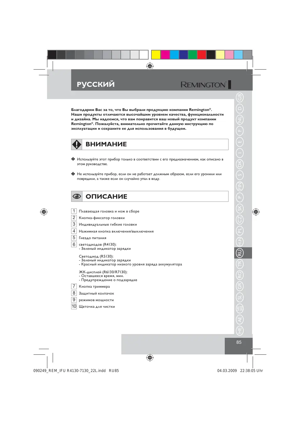 Найдите руководство к устройству бесплатно R7130 REMINGTON в формате PDF.