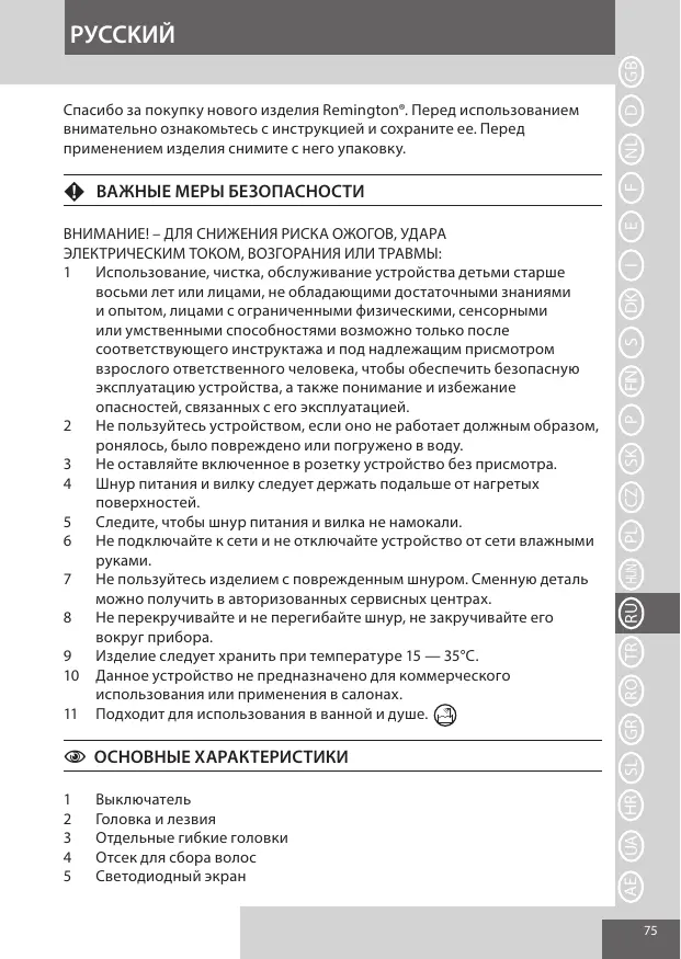 Спасибо за покупку нового изделия Remington®. Перед использованием внимательно ознакомьтесь с инструкцией и сохраните ее. Перед применением изделия снимите с него упаковку.