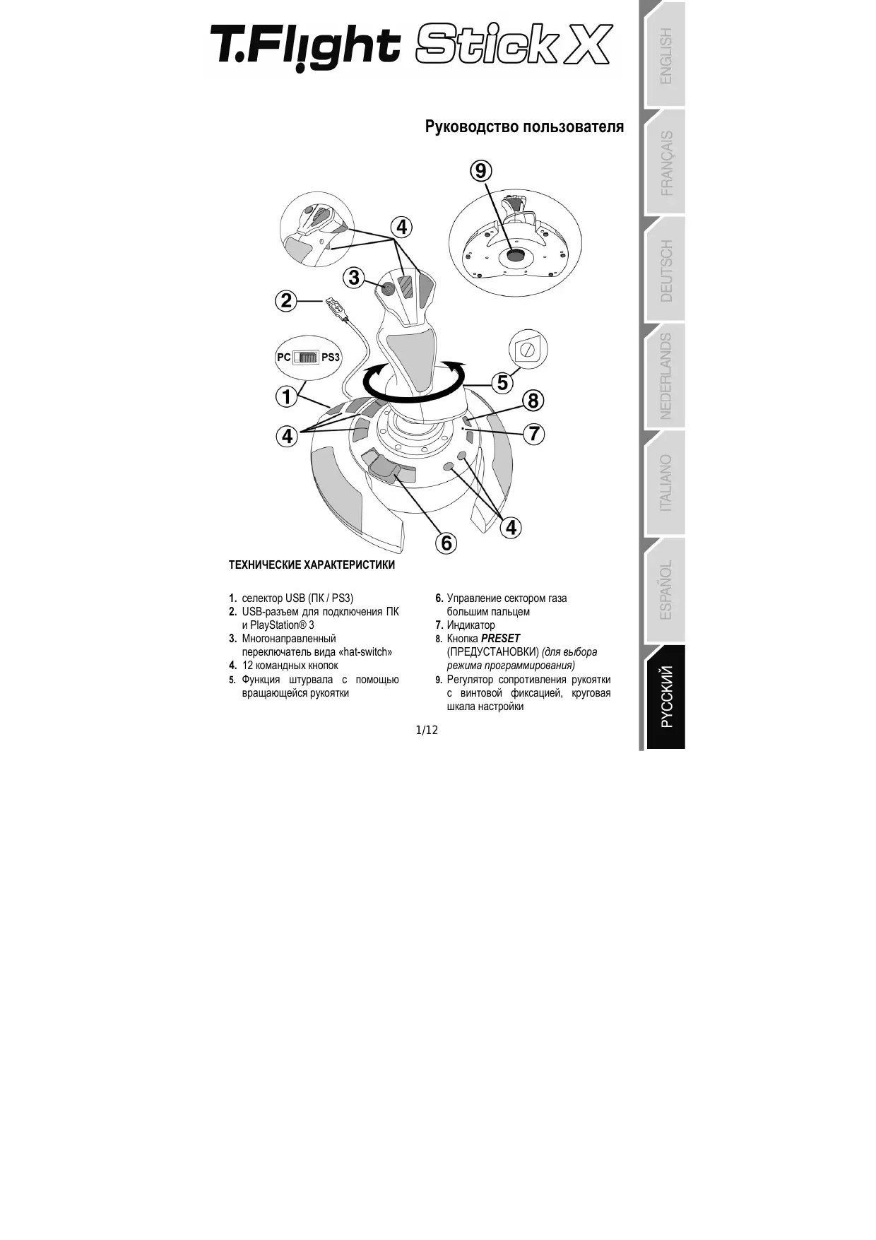 РУКОВОДСТВО ПОЛЬЗОВАТЕЛЯ T-FLIGHT STICK X THRUSTMASTER