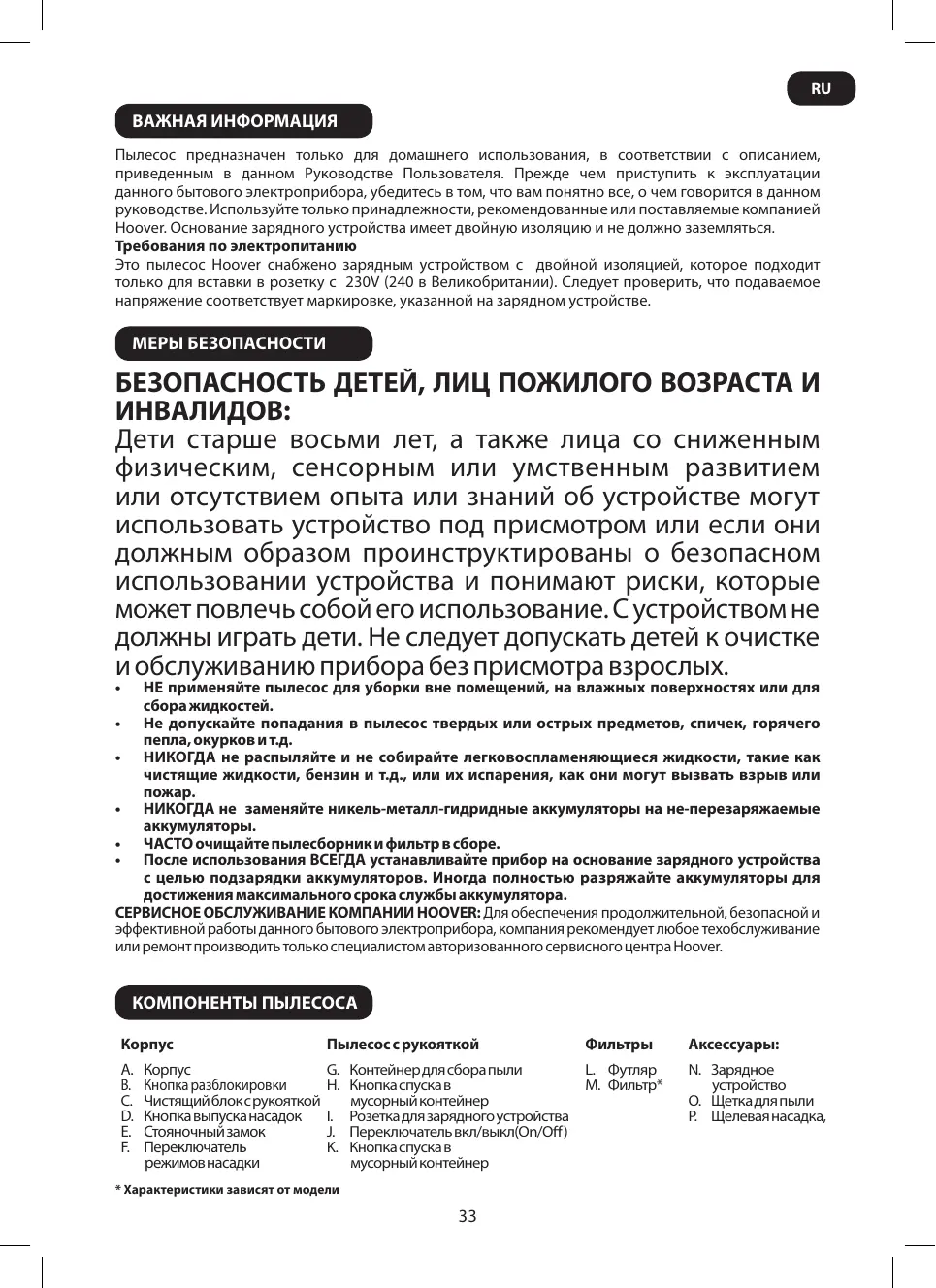РУКОВОДСТВО ПОЛЬЗОВАТЕЛЯ FJ144R2 FREEJET HOOVER