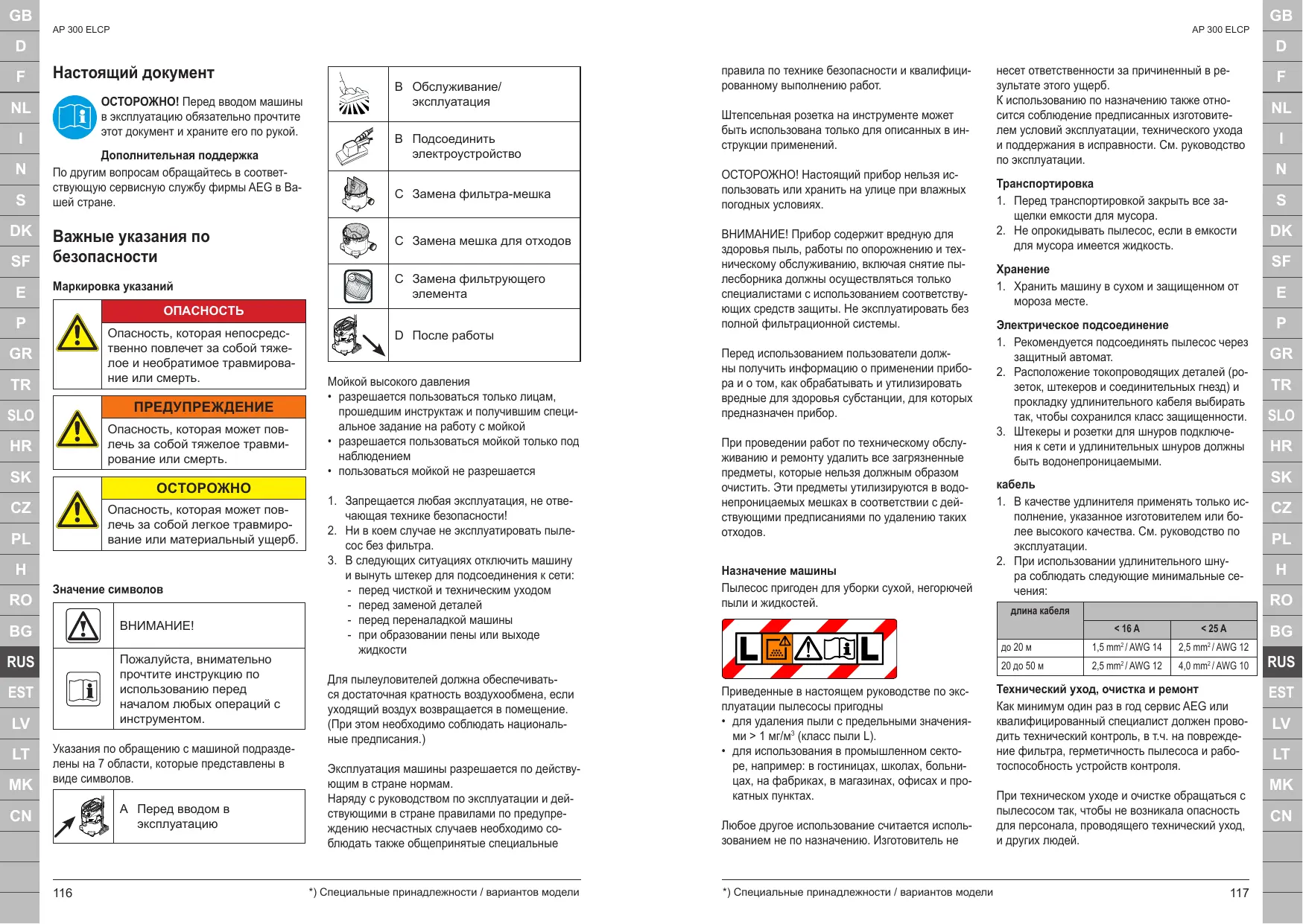 РУКОВОДСТВО ПОЛЬЗОВАТЕЛЯ AP 300 ELCP AEG