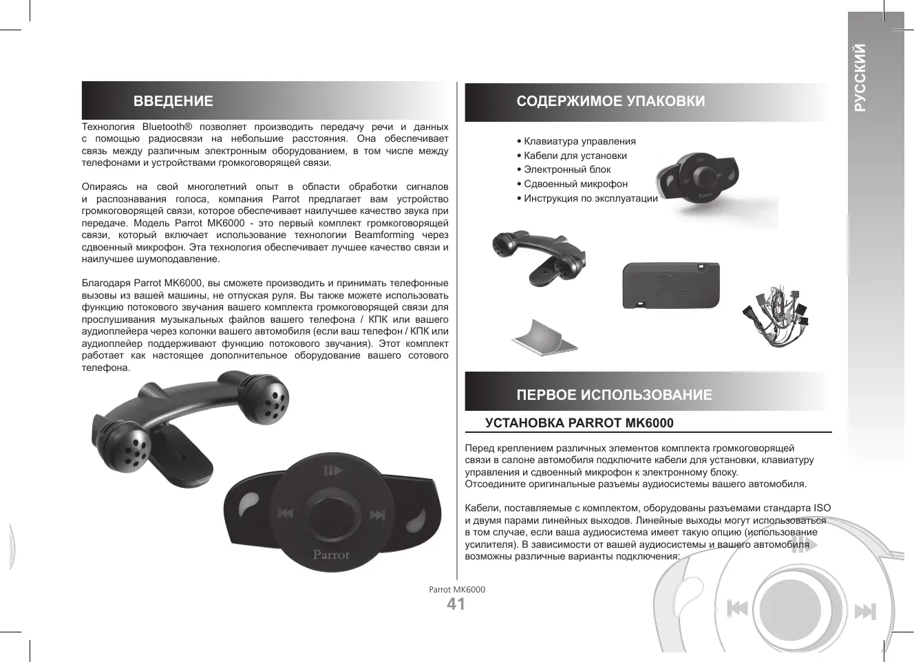 РУКОВОДСТВО ПОЛЬЗОВАТЕЛЯ MK6000 PARROT