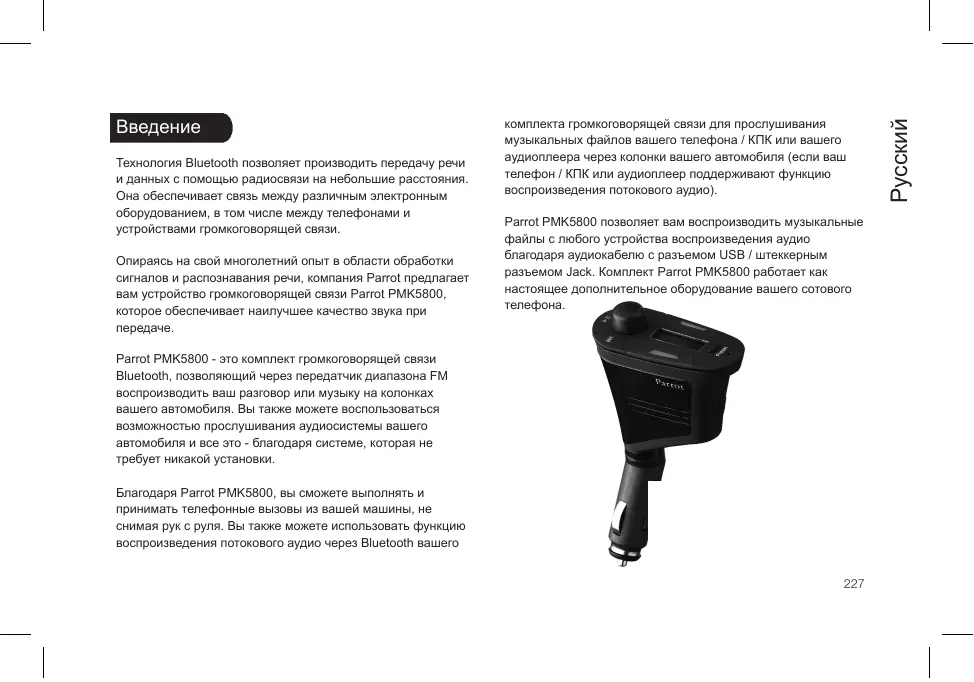 РУКОВОДСТВО ПОЛЬЗОВАТЕЛЯ PMK5800 PARROT