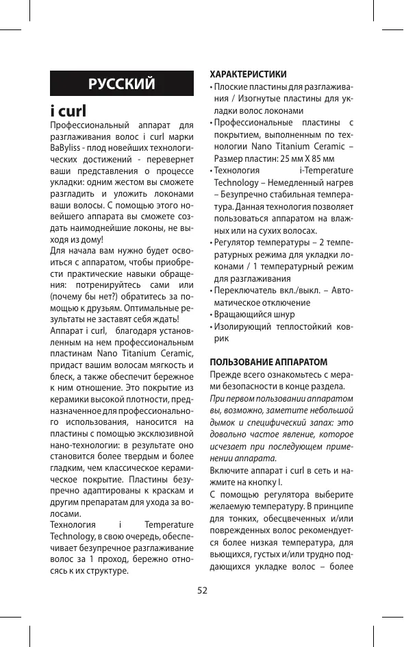 РУКОВОДСТВО ПОЛЬЗОВАТЕЛЯ I CURLE IPRO230 BABYLISS