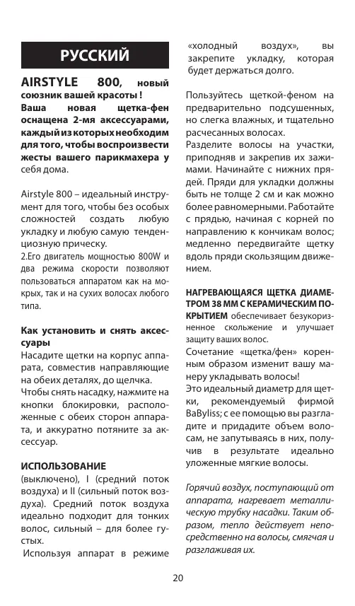 РУКОВОДСТВО ПОЛЬЗОВАТЕЛЯ AS80E BABYLISS