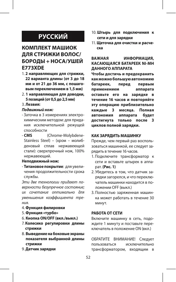 РУКОВОДСТВО ПОЛЬЗОВАТЕЛЯ E773XDE BABYLISS