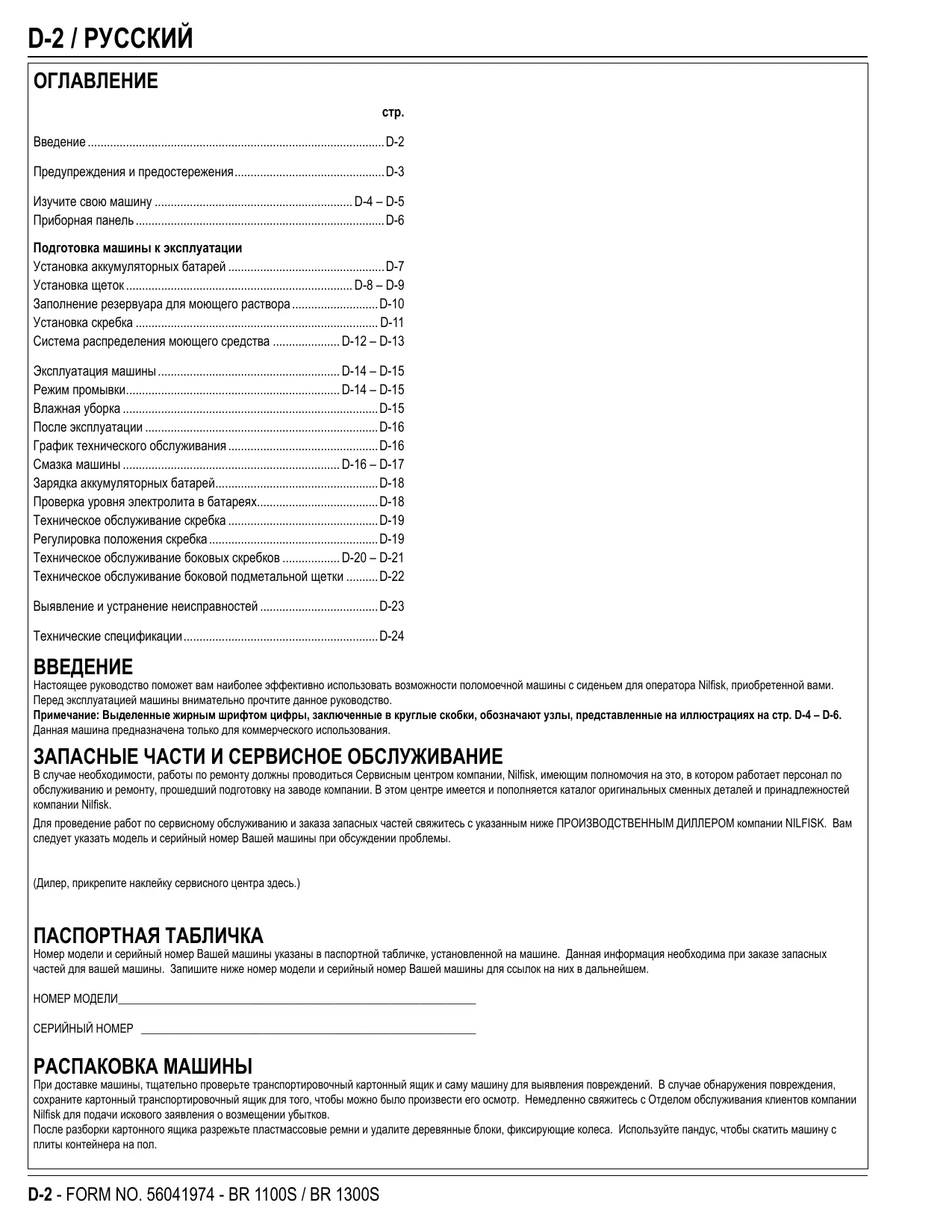 Скачайте инструкцию для вашего Автоматическая поломоечная машина в формате PDF бесплатно! Найдите своё руководство BR 1100S - NILFISK и возьмите своё электронное устройство обратно в руки. На этой странице опубликованы все документы, необходимые для использования вашего устройства. BR 1100S бренда NILFISK.