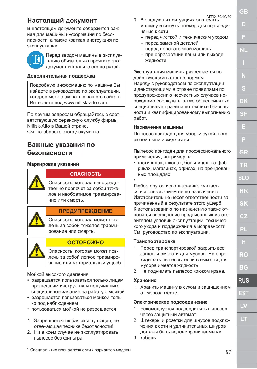 РУКОВОДСТВО ПОЛЬЗОВАТЕЛЯ ATTIX 30 BATT NILFISK