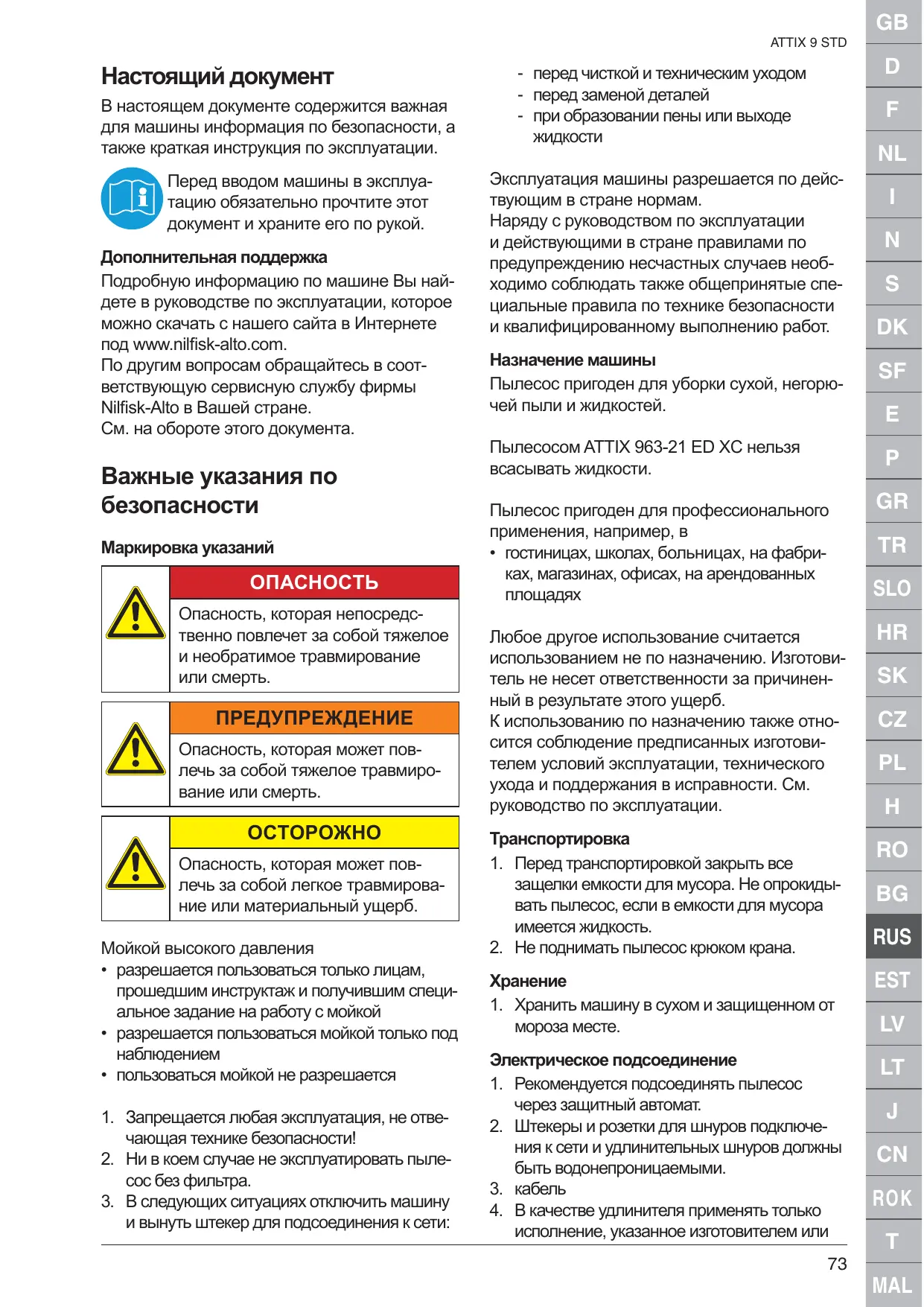 РУКОВОДСТВО ПОЛЬЗОВАТЕЛЯ ATTIX 961-01 NILFISK