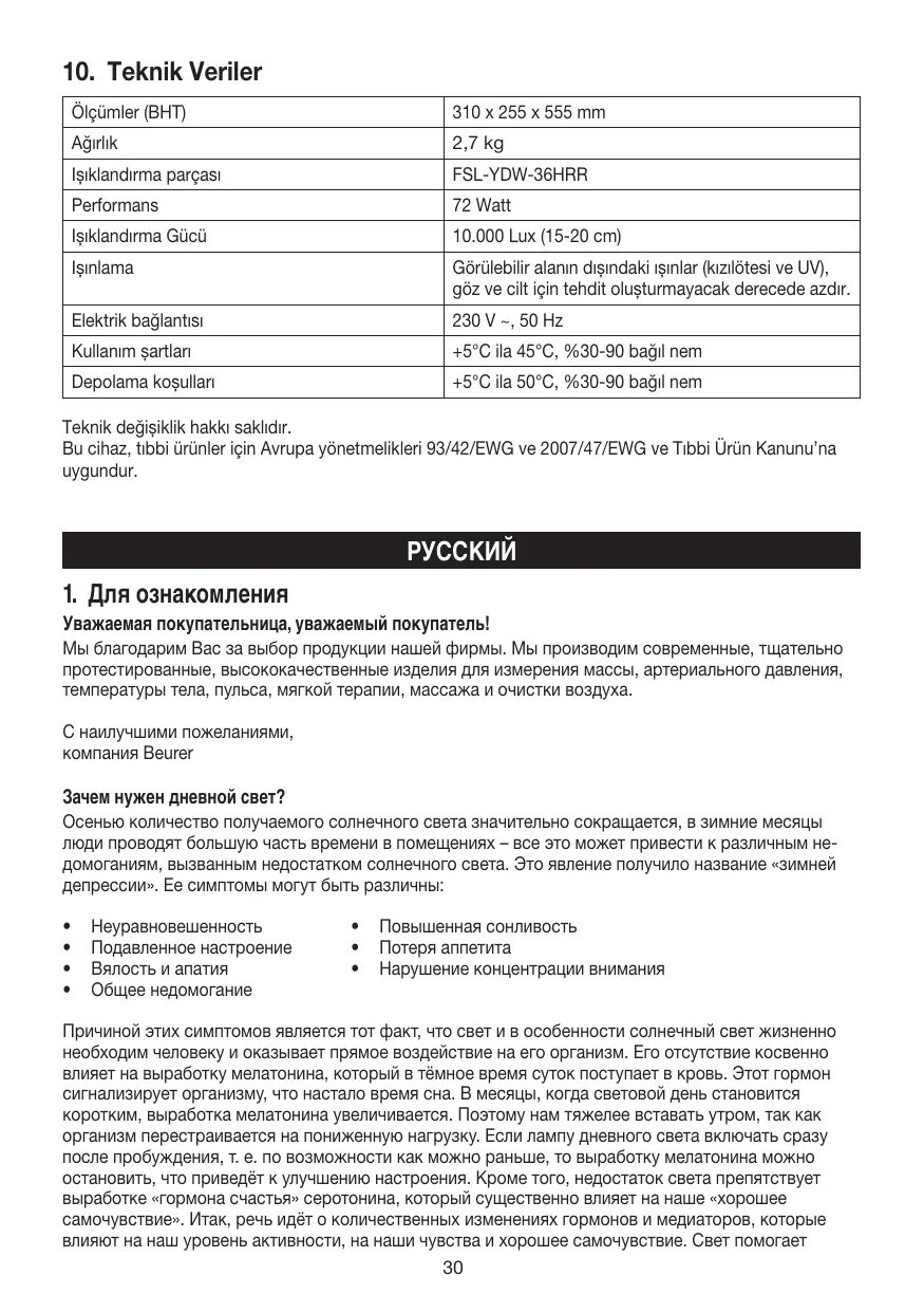 TL 80 - лампа для светотерапии BEURER - Бесплатное руководство пользователя