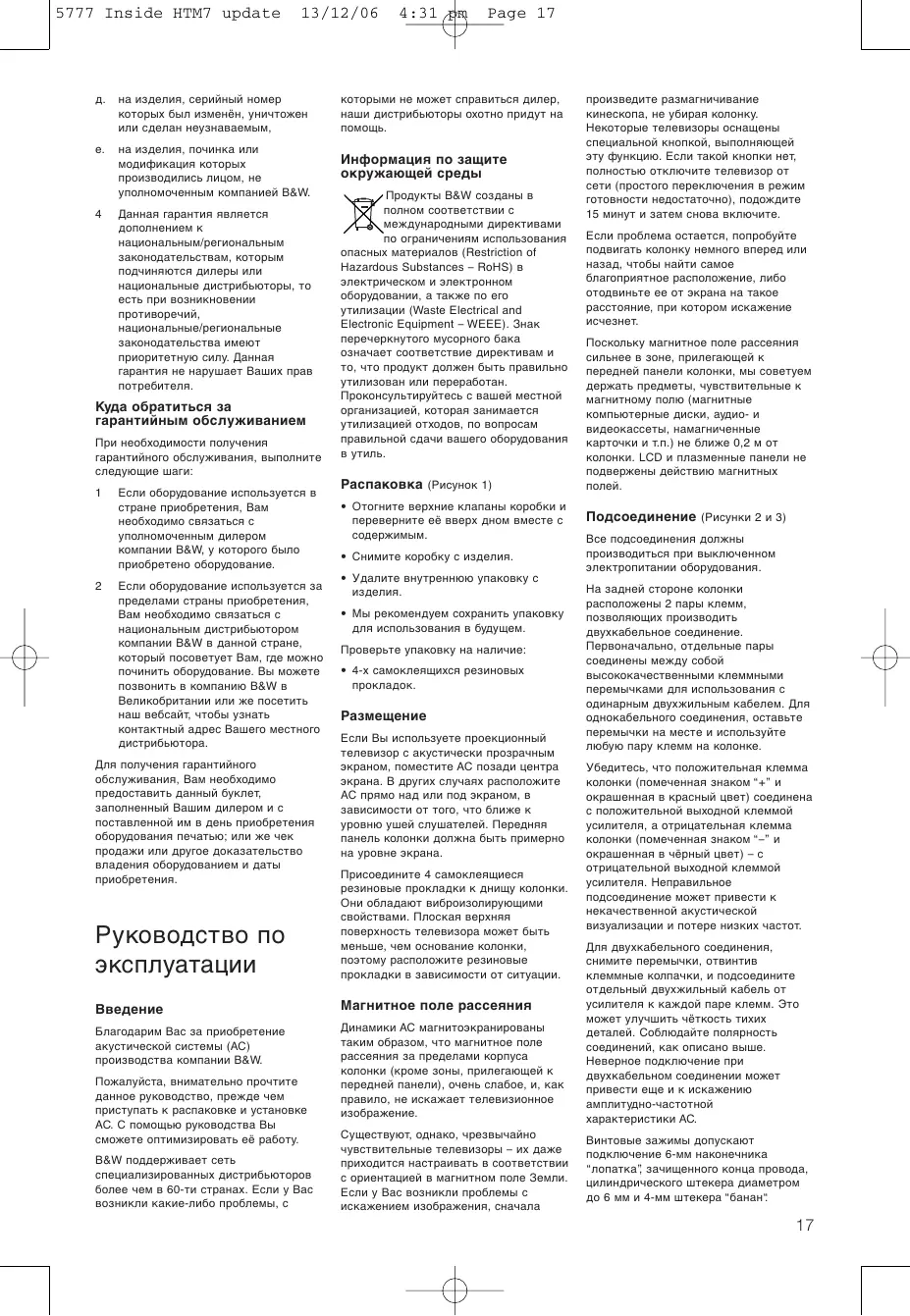 РУКОВОДСТВО ПОЛЬЗОВАТЕЛЯ B&W HTM7 B&W