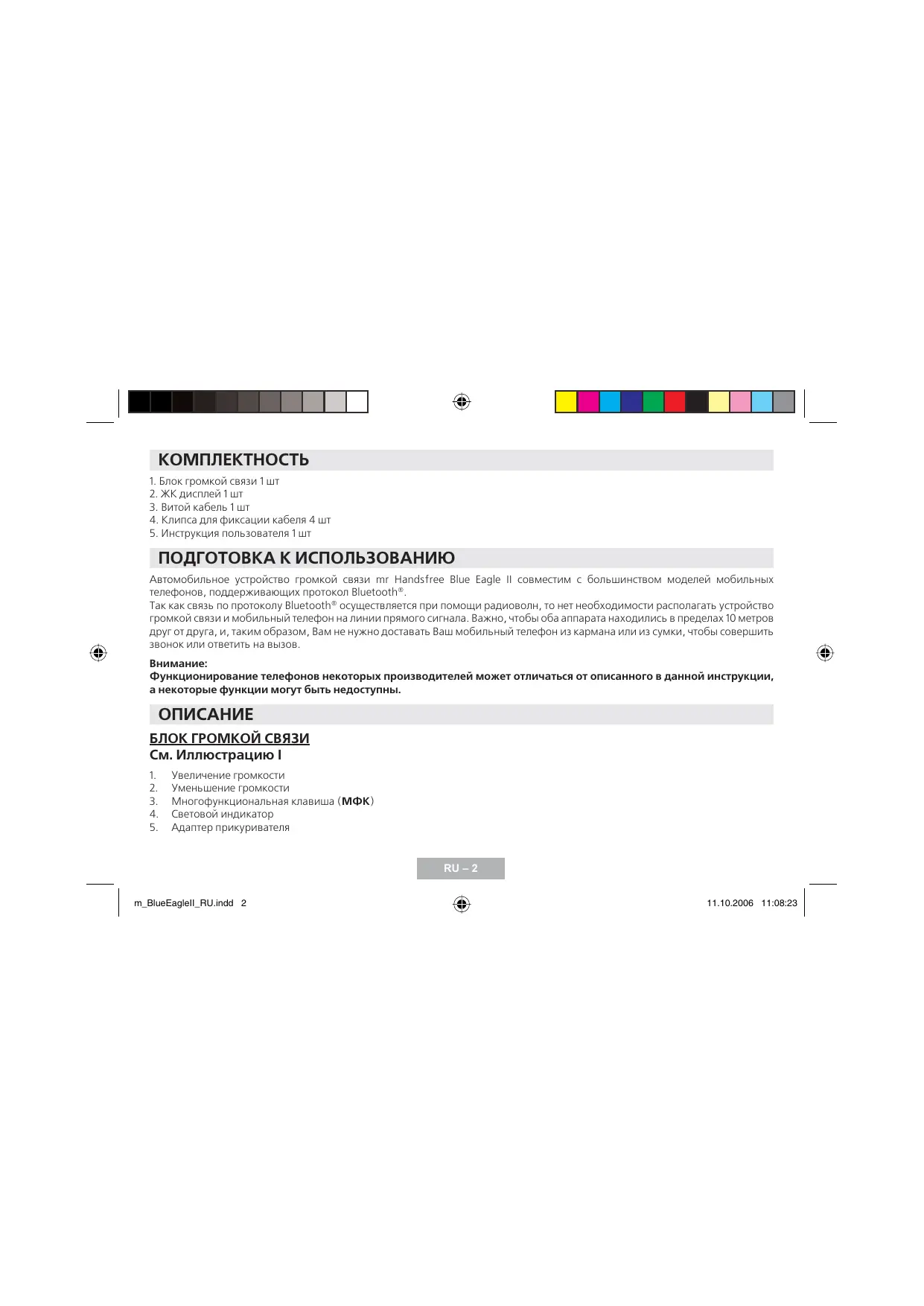 РУКОВОДСТВО ПОЛЬЗОВАТЕЛЯ BLUE EAGLE 2 MR HANDSFREE