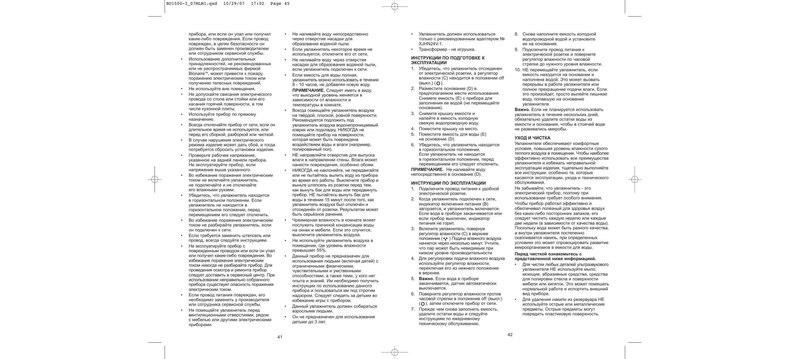 Найдите руководство к устройству бесплатно BU1500 BIONAIRE в формате PDF.