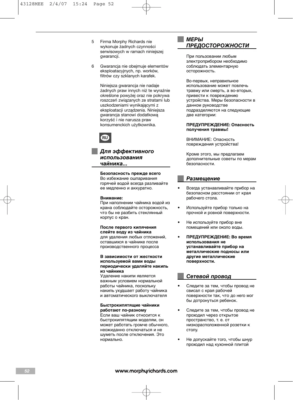 Скачайте инструкцию для вашего чайник в формате PDF бесплатно! Найдите своё руководство IIIUMA GLASS KETTLE 43128 - MORPHY RICHARDS и возьмите своё электронное устройство обратно в руки. На этой странице опубликованы все документы, необходимые для использования вашего устройства. IIIUMA GLASS KETTLE 43128 бренда MORPHY RICHARDS.