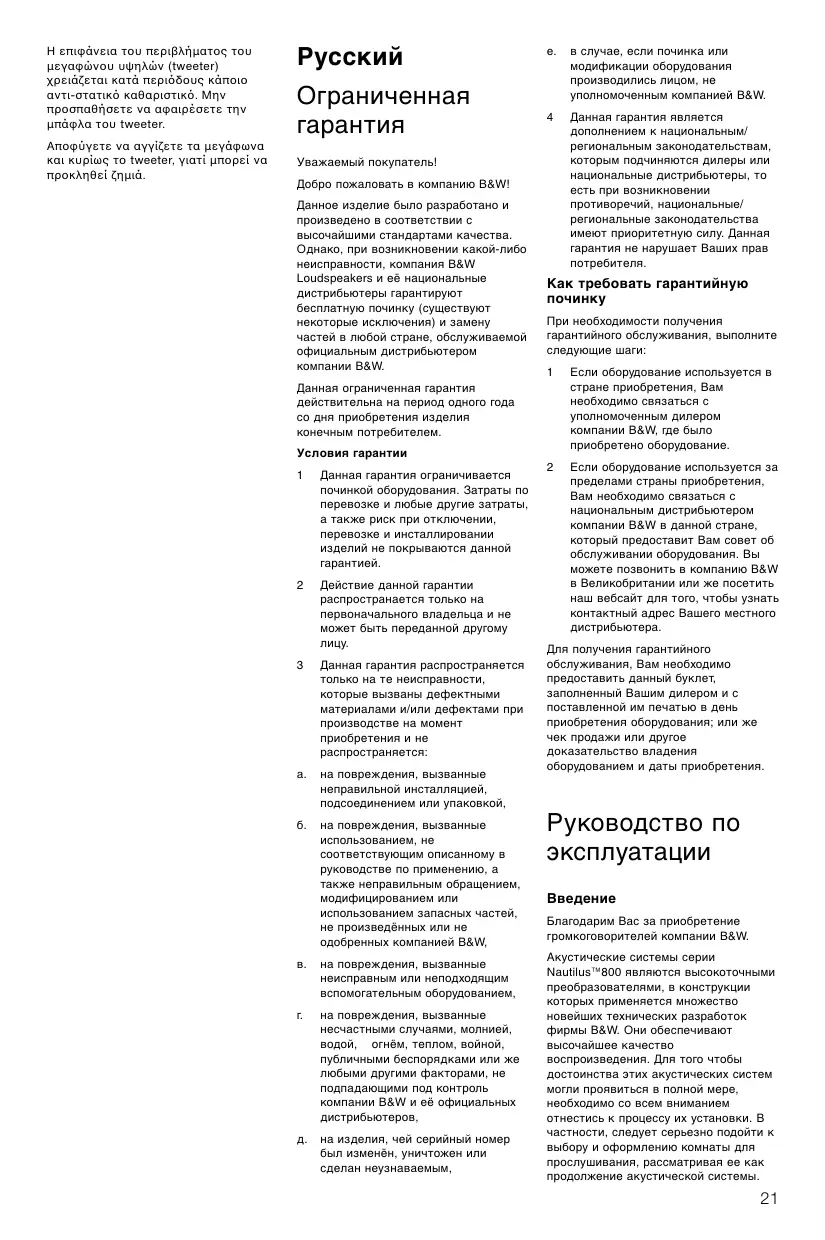Найдите руководство к устройству бесплатно B&W NAUTILUS HTM1 B&W в формате PDF.