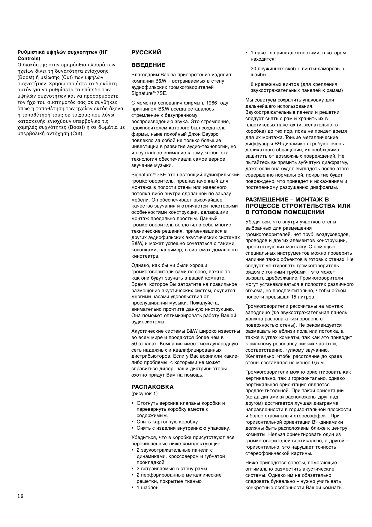 DEUTSCH EINLEITUNG Vielen Dank für den Kauf der B&WSignature™7SE, einem Wandeinbaulautsprecher für den audiophilen Klanganspruch.