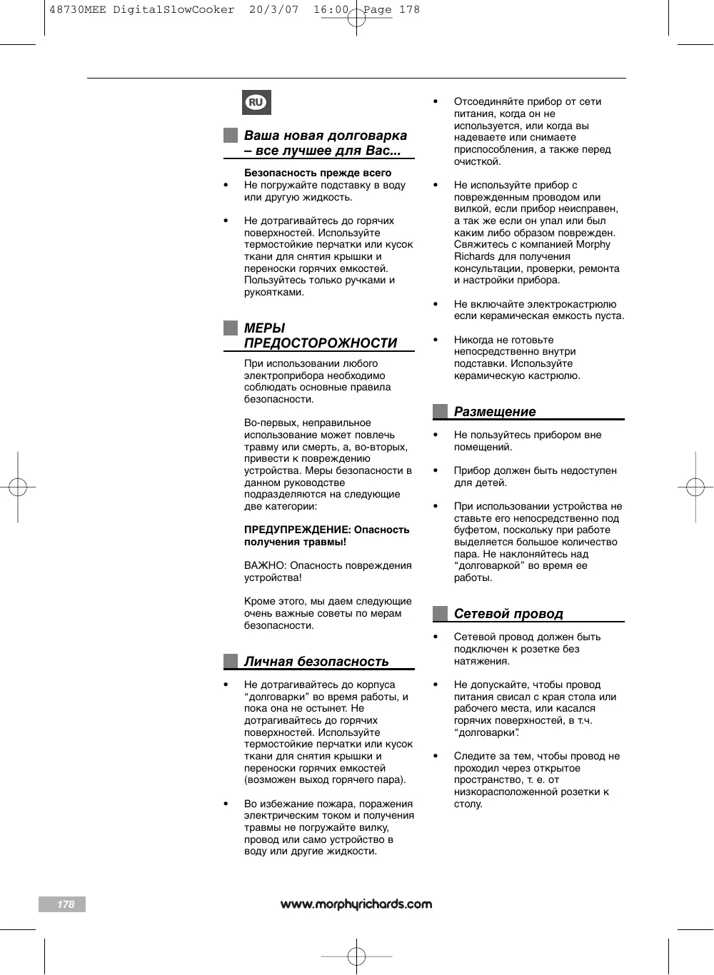 Найдите руководство к устройству бесплатно 48730 MORPHY RICHARDS в формате PDF.