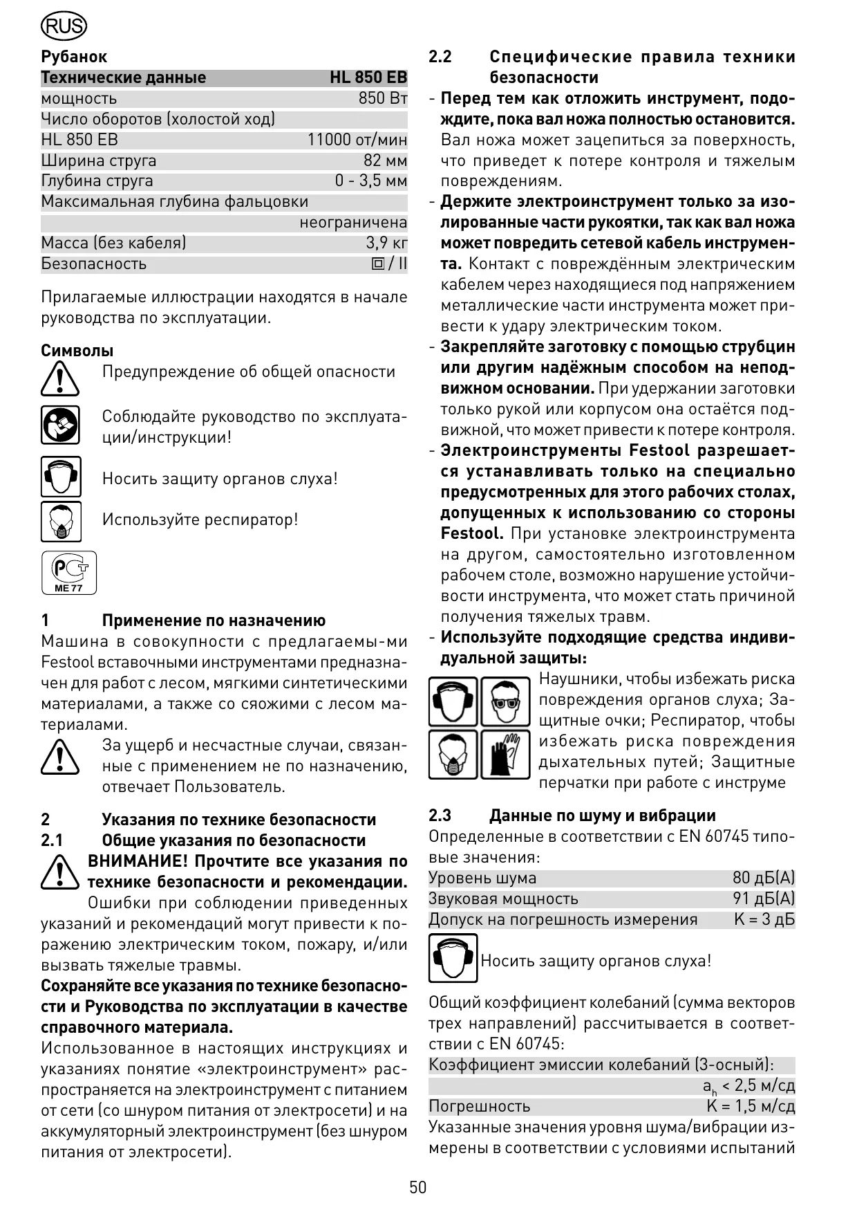 РУКОВОДСТВО ПОЛЬЗОВАТЕЛЯ HL 850 EB FESTOOL