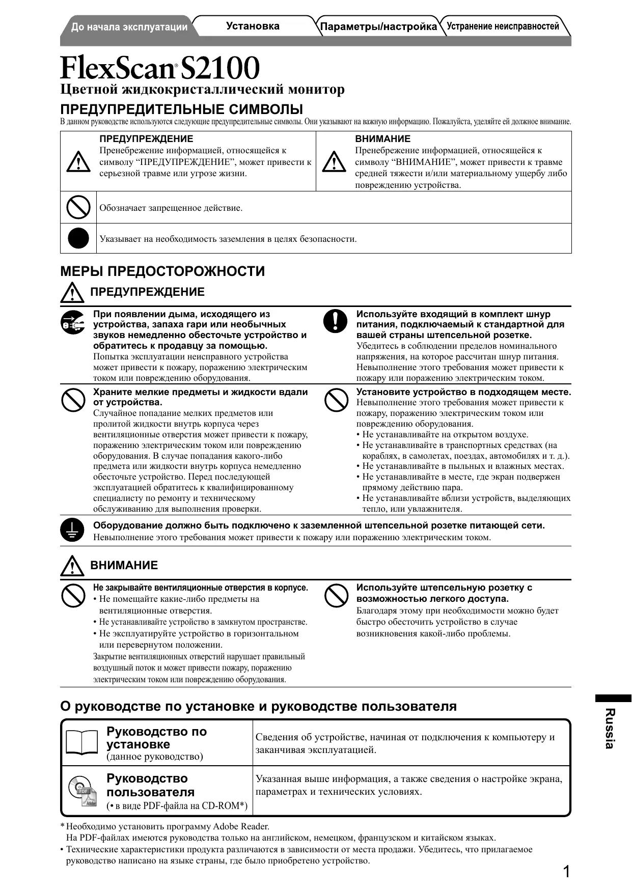 Найдите руководство к устройству бесплатно FLEXSCAN S2100 EIZO в формате PDF.