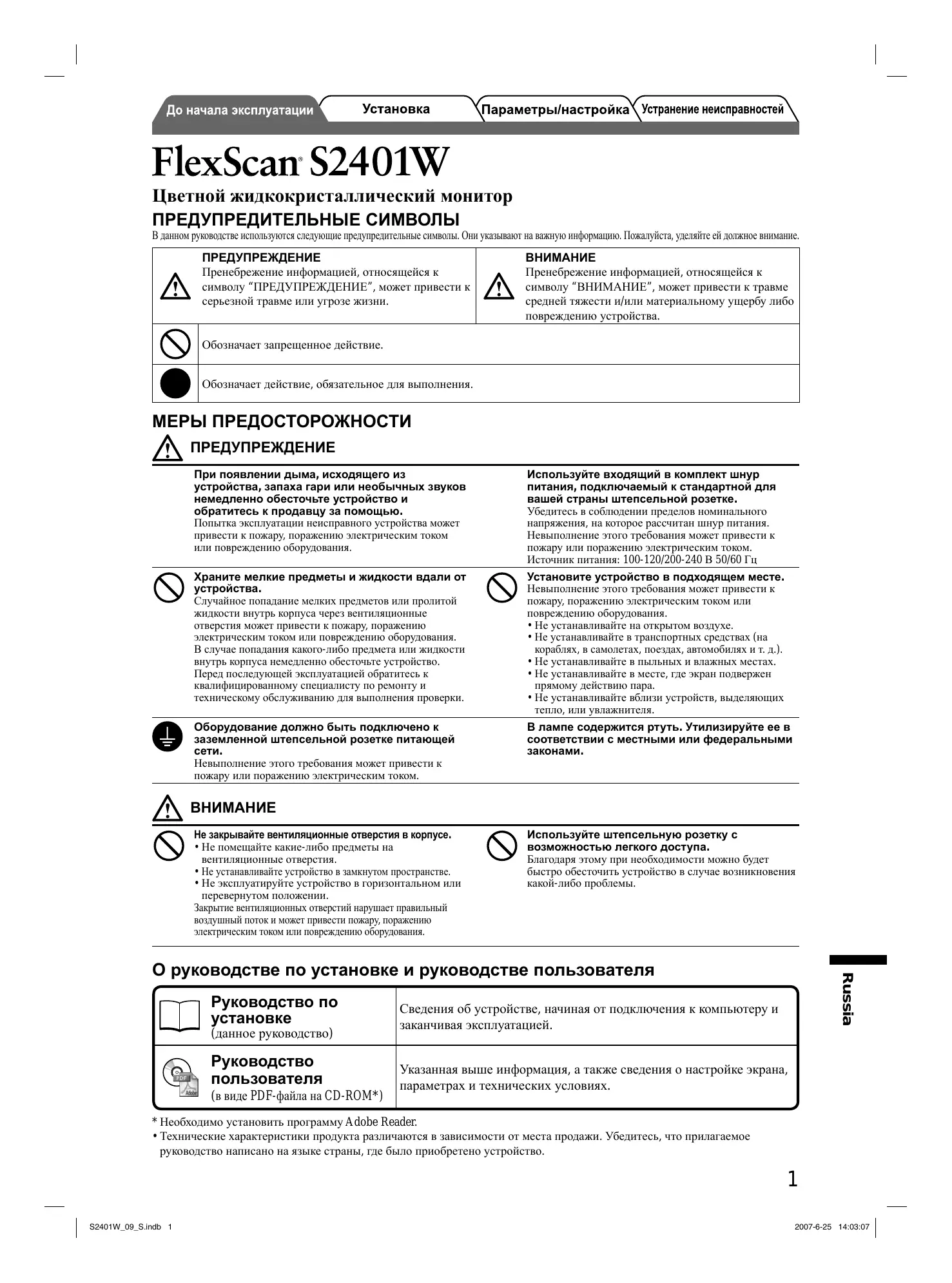 FLEXSCAN S2401W - Монитор EIZO - Бесплатное руководство пользователя