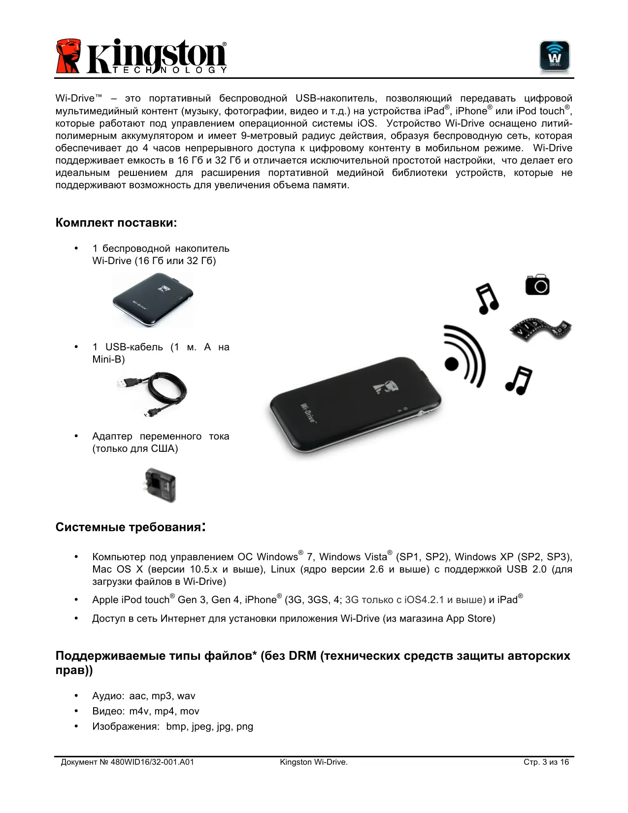 Скачайте инструкцию для вашего в формате PDF бесплатно! Найдите своё руководство WID - KINGSTON и возьмите своё электронное устройство обратно в руки. На этой странице опубликованы все документы, необходимые для использования вашего устройства. WID бренда KINGSTON.