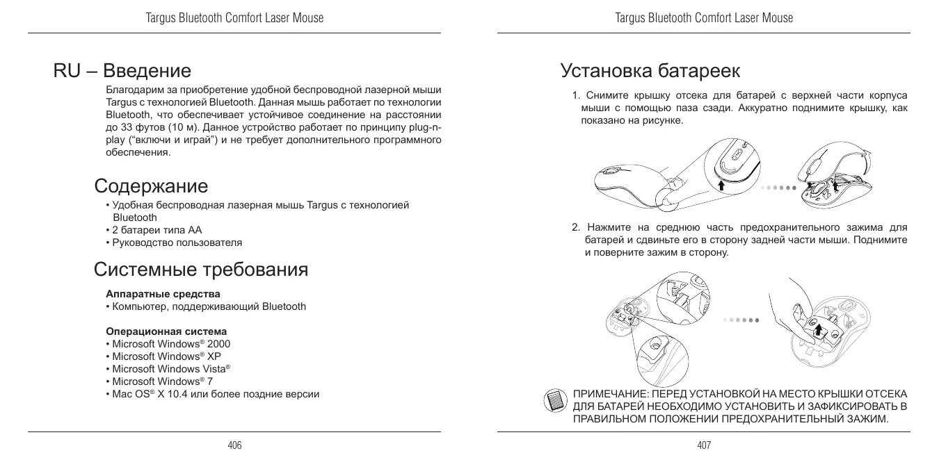 Скачайте инструкцию для вашего Bluetooth мышь в формате PDF бесплатно! Найдите своё руководство BLUETOOTH COMFORT LASER MOUSE - TARGUS и возьмите своё электронное устройство обратно в руки. На этой странице опубликованы все документы, необходимые для использования вашего устройства. BLUETOOTH COMFORT LASER MOUSE бренда TARGUS.