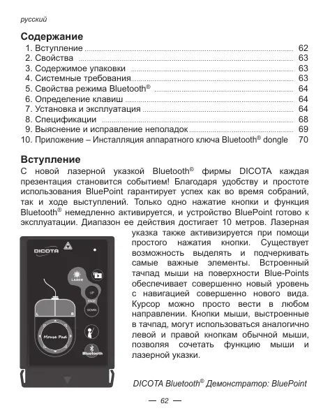 BLUEPOINT - пульт дистанционного управления DICOTA - Бесплатное руководство пользователя
