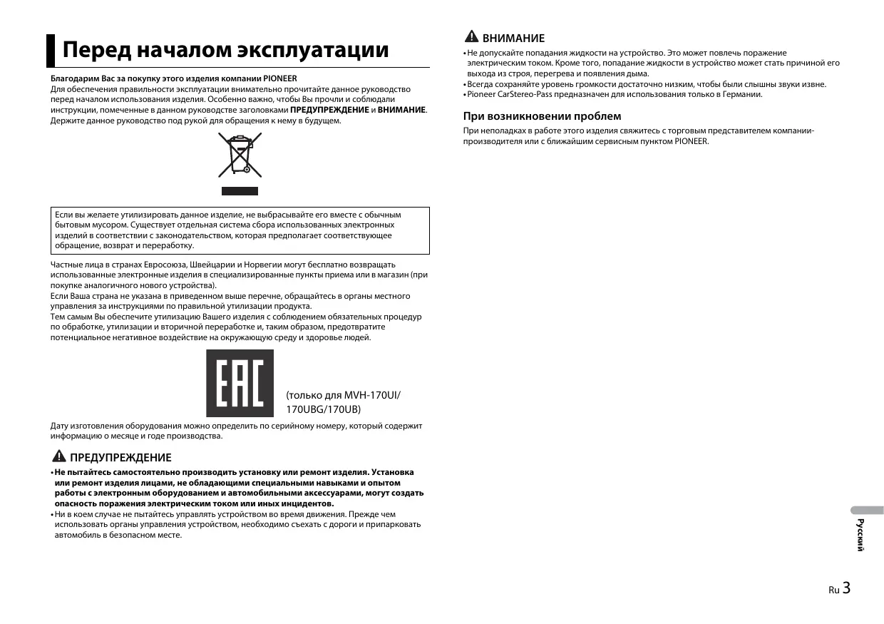 MVH-170UI - автомобильное радио PIONEER - Бесплатное руководство пользователя