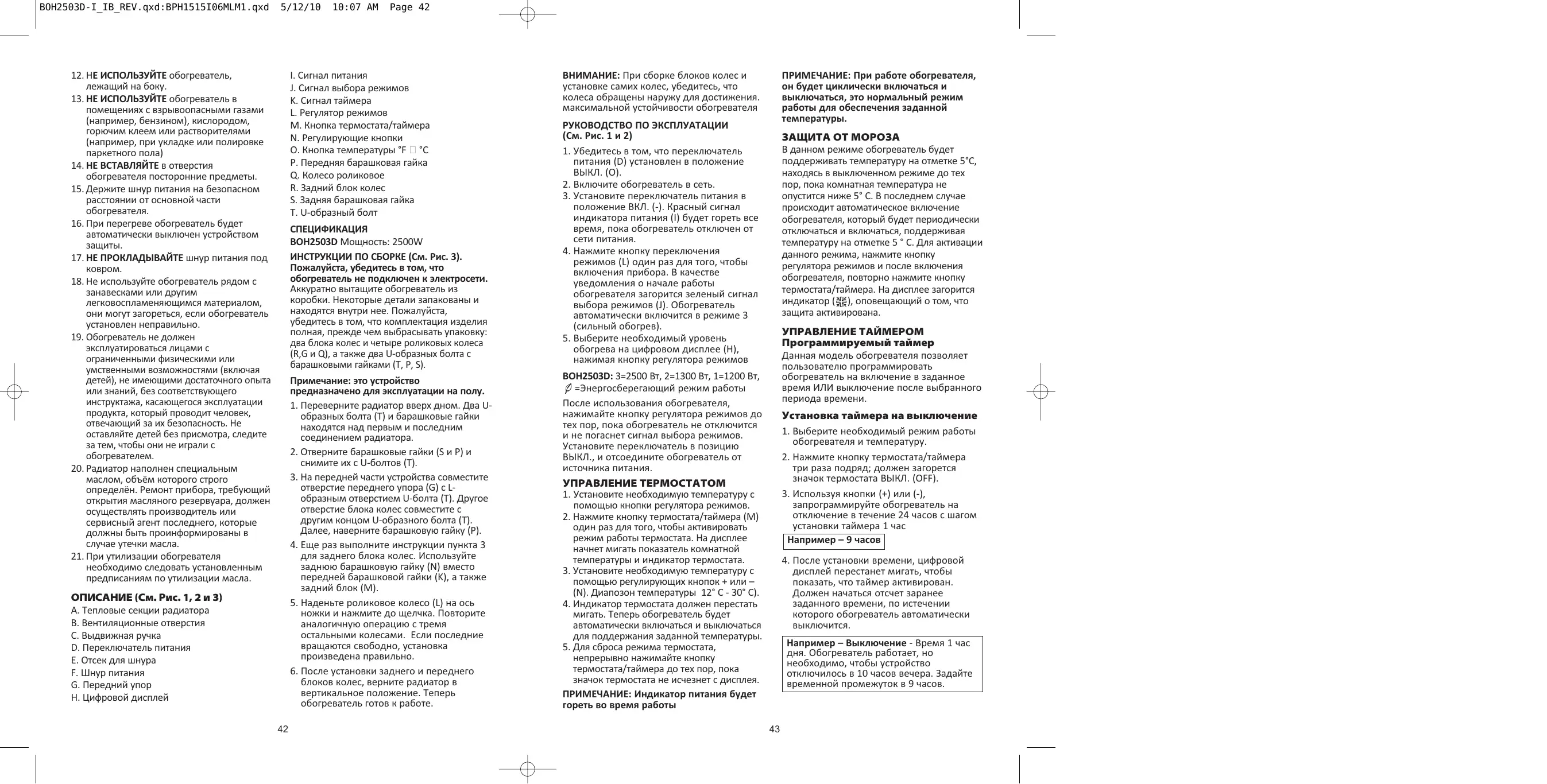 РУКОВОДСТВО ПОЛЬЗОВАТЕЛЯ BOH2503-I BIONAIRE