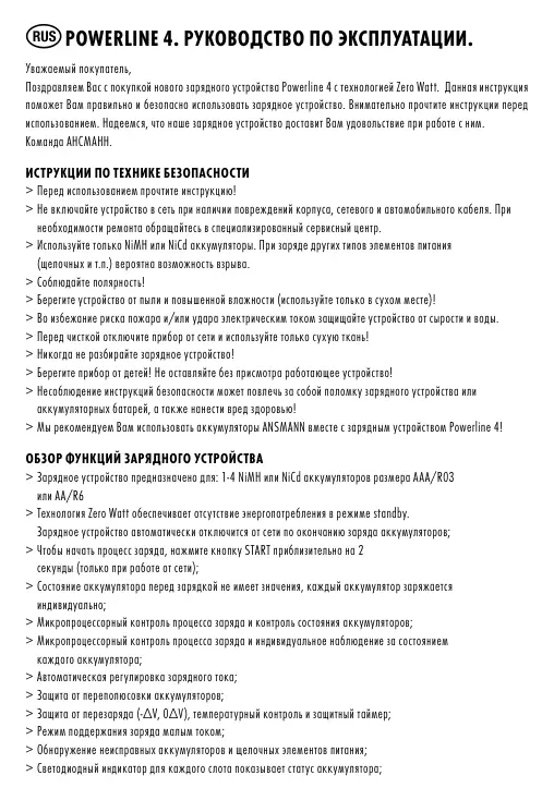 РУКОВОДСТВО ПОЛЬЗОВАТЕЛЯ POWERLINE 4 ANSMANN