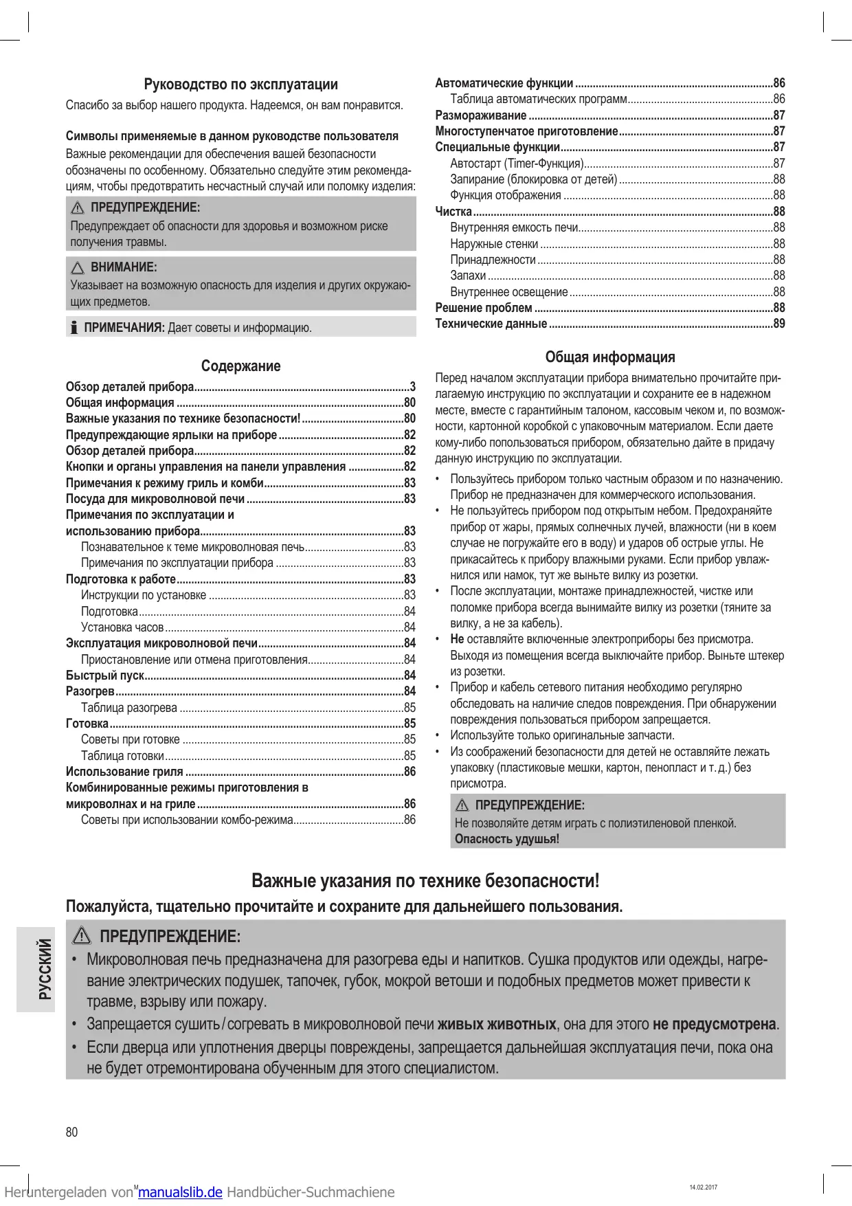 - Важные указания по технике безопасности! p. 80