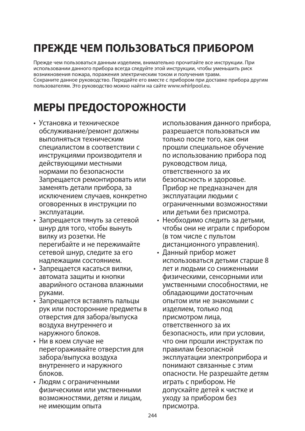 РУКОВОДСТВО ПОЛЬЗОВАТЕЛЯ PACW9HP WHIRLPOOL