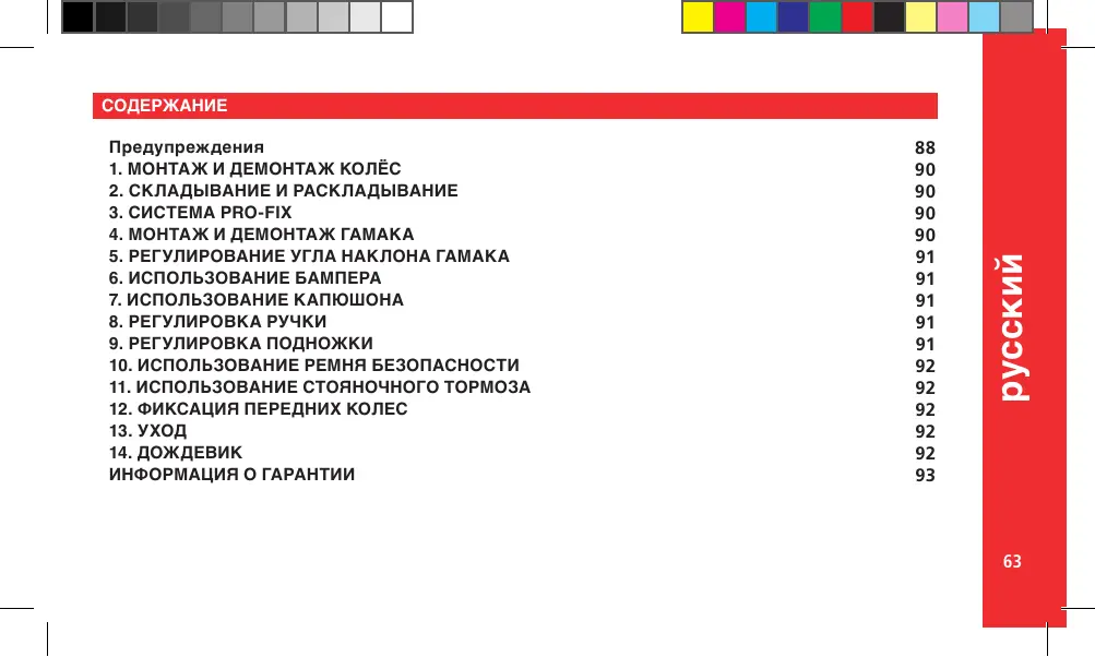 5 . RÉGLAGE DE L’ANGLE D’INCLINAISON DU HAMAC 6 . UTILISATION DU GARDE-CORPS 7 . UTILISATION DE LA CAPOTE 8 . RÉGLAGE DU GUIDON 9 . RÉGLAGE DU REPOSE-JAMBES 10 . UTILISATION DE LA CEINTURE 11 . UTILISATION DU FREIN DE STATIONNEMENT 12 . BLOCAGE DES ROUES AVANT 13 . ENTRETIEN 14 . HABILLAGE DE PLUIE INFORMATIONS SUR LA GARANTIE